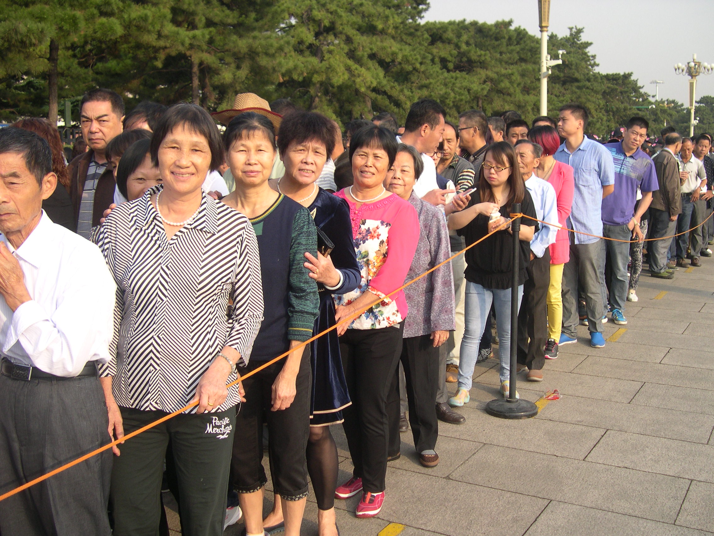 广场上的导游说,天安门广场上每天都有八万多人排队瞻仰毛主席仪容,节假日更多,图为等候瞻仰毛主席仪容的长队