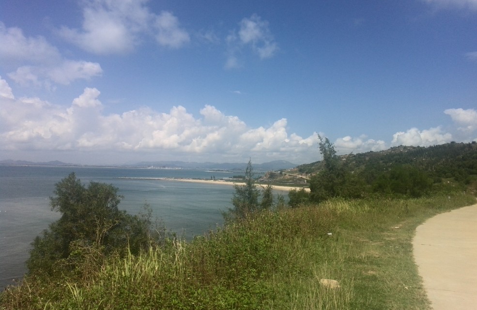 向莲头岭方向,到山下时沿西麓(山脚),开过西南脚转向东,沿南边山路傍海走,一边赏海景,可至东南角,全程水泥路.