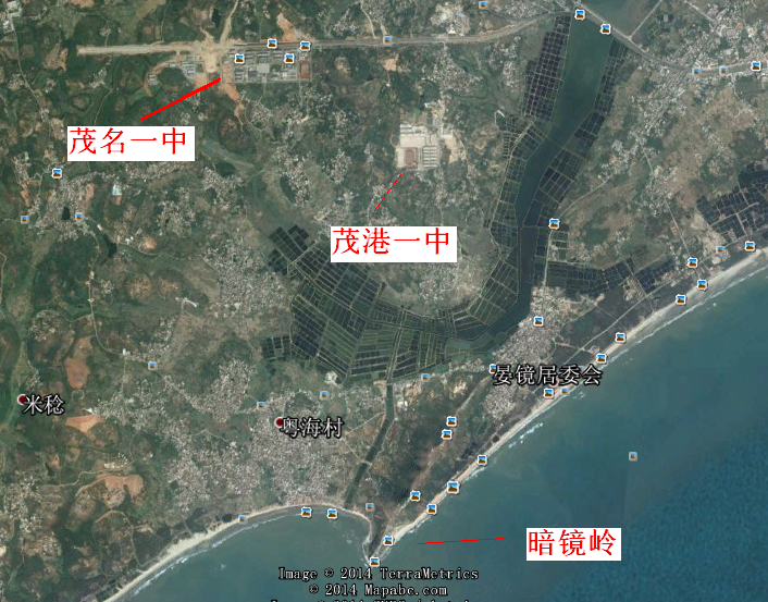 “茂名一中”不仅选址存在致命的错误,而且取向也跟一般风水师一样犯了不可饶恕的错误DD其竟然取“暗镜岭”“为案”(文字上地理名词用“晏镜岭”,黎话叫“暗镜岭”)!许多的风水师认为,上吉的风水宝地必须有“案山”,如此方可出贵人(理由是,当官必须有案台)。且不论这个“案山”是否真的存在富贵与否的能耐,仅就距离来说,你能使用远在天边的“案山”么?显然,“茂名一中”取“暗镜岭”作为“案山”是不可取的,因为其距离“暗镜岭”尚有很远的路程(如下图)。就算“案山”代表能出达官贵人,难道什么“案山”都一样?为什么“愚公移山”中的王屋山与太行山没有成就“愚公”一家的富贵腾达而使得愚公一家不得不“每天掘山不止”?显然,“案山”之说又是传统风水论的谬误所在矣!不管阴宅阳宅,对面出现高山阻挡,这都不是什么好事,尤其是阳宅。如果你不明白其中的道理,不妨参考一下BJ故宫的选址与选向DD“中轴线”之南可有高山“为案”?可见,“取山为案”是风水师的谬误之选。此外,“茂名一中”面对的“案山”是什么山?那叫做“暗镜岭”?从玄道来说,“暗镜”是什么东西?其跟“暗箭”没有多少的差异。如果哪个人房子被“暗箭”所射,其未来家境就可想而知了。因此,“暗箭”射来,你说“茂名一中”会有好果子吃?