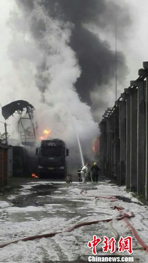 记者赶到现场时,着火爆炸的两辆槽罐车仍然喷着两条红彤彤的火龙,消防部门正在全力扑救中。(完)