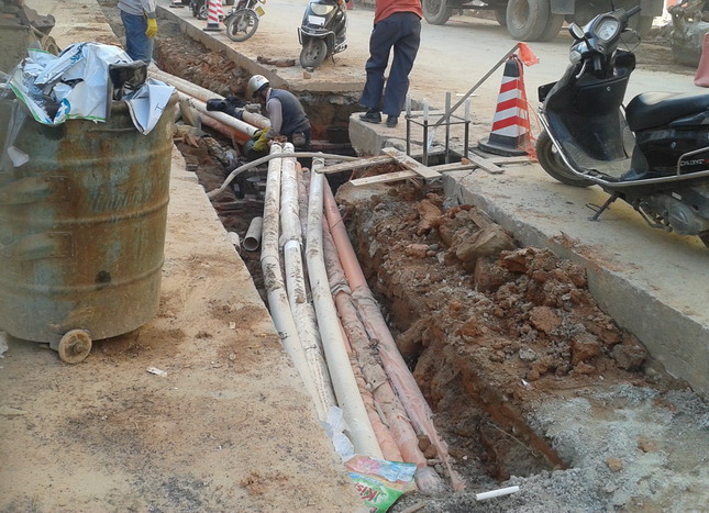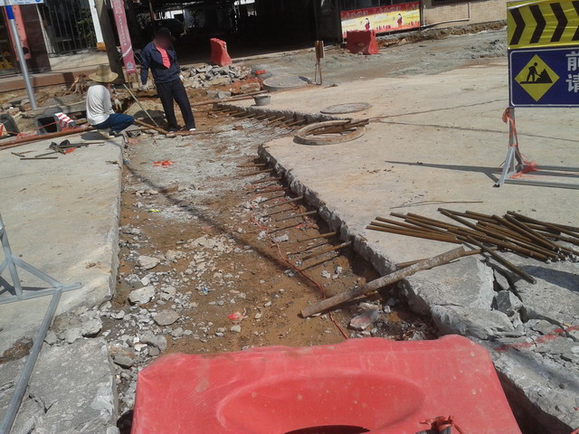 ,拟似挖好做好铺设好排污管道,电力,电信..等线路工程与接驳钢铁铁支网重铺设好诂计是检测不过关的钢根混凝土水泥地基面等,后再铺设沥青路面,诂计暂可通行?