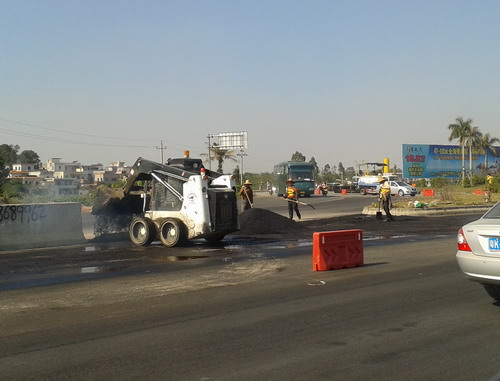 诂计铺设沥i路面很快吧?看下那楼转盘处,貌似都不用一天半天或大几个钟暂可通行,或许此段面积较小点吧?