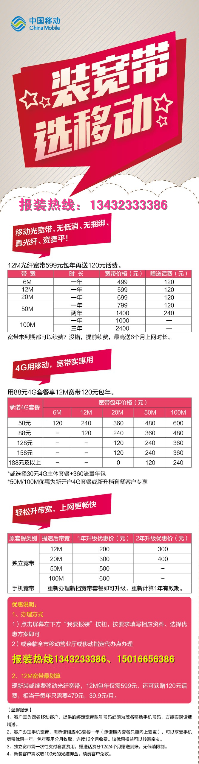5、本次减50元一户优惠只限电白区移动光宽带已覆盖区域内的客户享受。
