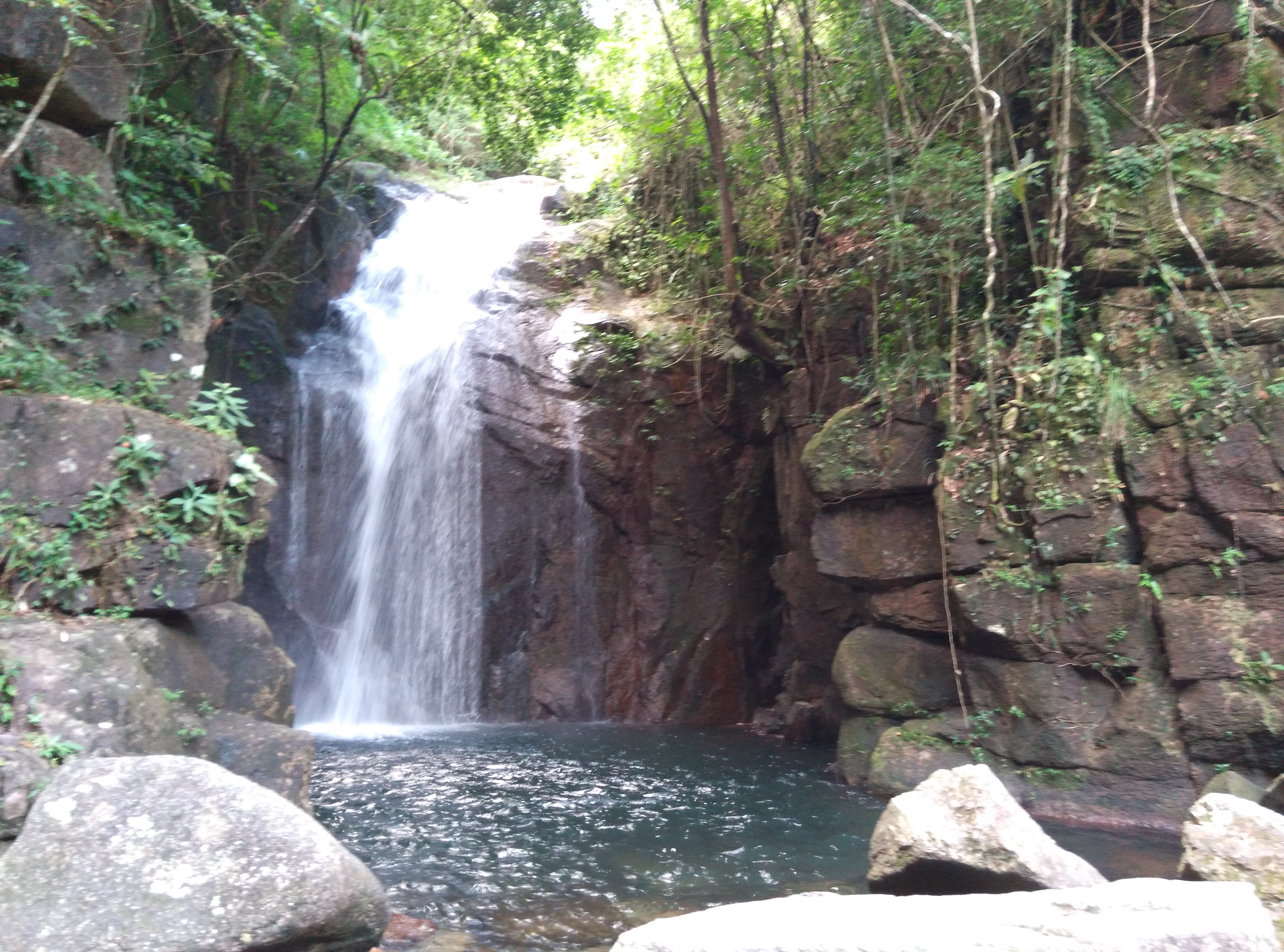 里坪(即长牛奶树处)停车收费十元,然后大体沿石河旁小路,经老杉树,步行约20分钟至大瀑布。大瀑布下是寒潭,同事们在水里泡十分钟,未修成太阴神功就赶紧起来。