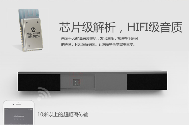 蓝牙音乐电视柜可以通过蓝牙直接和你的iPhone6s连接。直接播放手机上面的海量音乐,无需其他APP支持。10米超远距离连接,HIFI级的音质,浑厚的低音,适合的高音,让你真正享受音乐。