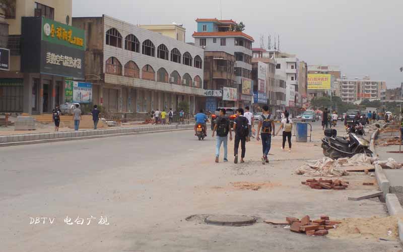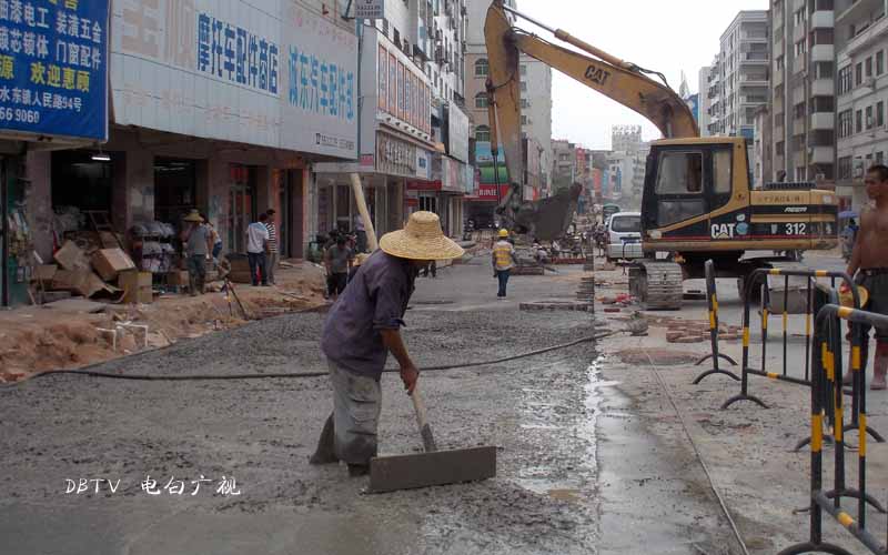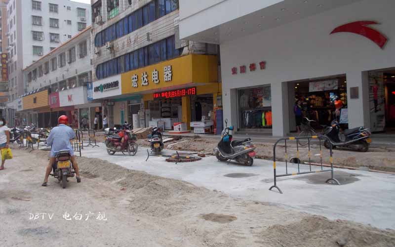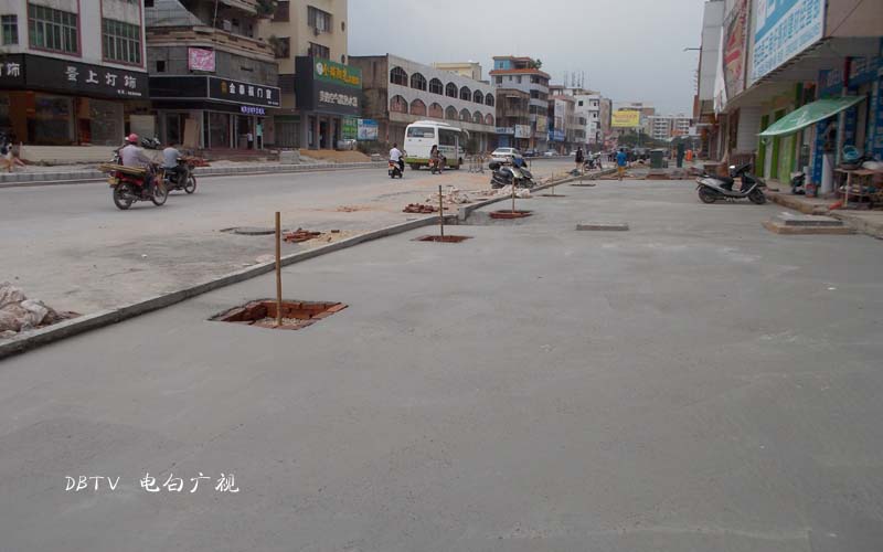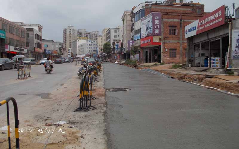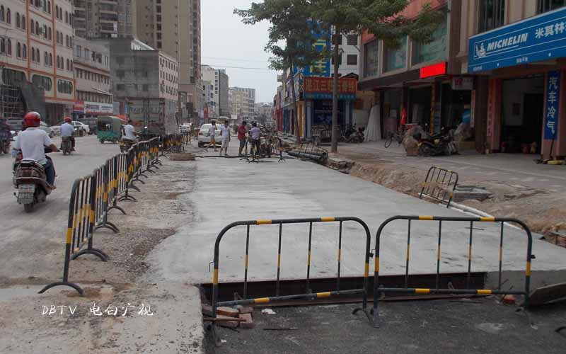 在水东加油站至中心台段,小编看到已断断续续的铺好了一些路段,有一些路段依旧在小改,这一段的管道改造也较为复杂,沿街涉及的店铺、住宅区更多,所以这一段进度推进得非常的慢,只能步步为营。