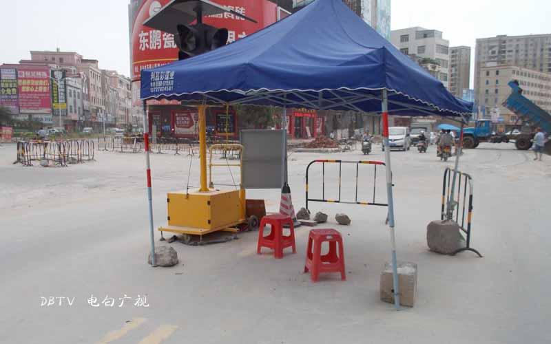 在水东加油站路口,小编发现临时交通岗亭还在,不过现场没有交警在场,可能是周五,警察同志在别处指挥交通,路口的交通管制标示也在,不过过往车辆熟视无睹,还好这时这里的车流量并不大,没有交通拥堵现象。
