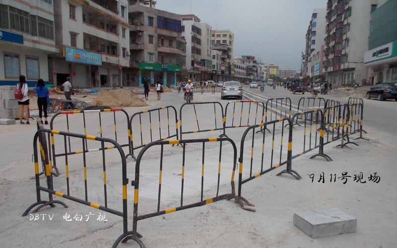 之前预留的沟槽,也已经用混凝土填回,由于水泥未干,用护栏隔离开。