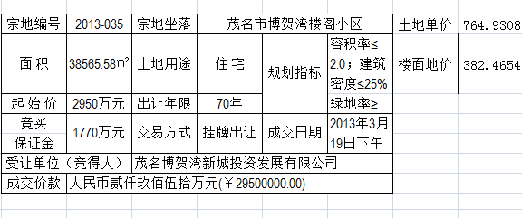 先看一下土地多少钱,我找了2013年电城出让的国有土地作案例参考,来源于茂名国土局网站(案例图请看附件)