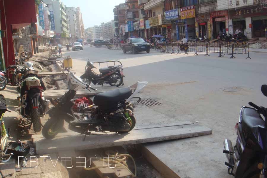 小编在人民路看到,由于临近中秋佳节,为方便广大市民回家乡过节,施工单位已经疏通路口和路面,清理堆泥和材料,在为完成的路面、坑洼处设置醒目安全标志,原来受雨水冲蚀的烂路填平。除了个别路段正在紧张施工,其余基本行车通畅。