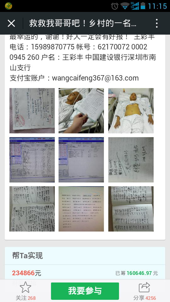 请大家多转微信圈,微信群,让爱心延续下去!谢谢!