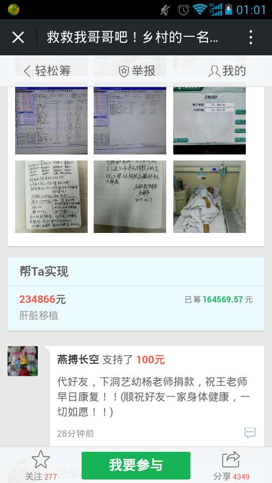【捷报频传】感谢各界热心人士对我校王旺老师的关注和帮助,其肝脏移植手术将定于今天下午进行,请与我一起祈祷吧,另,因医疗费用仍有缺口,请您再给力一把,不管是捐款还是转发,都是功能无量!!