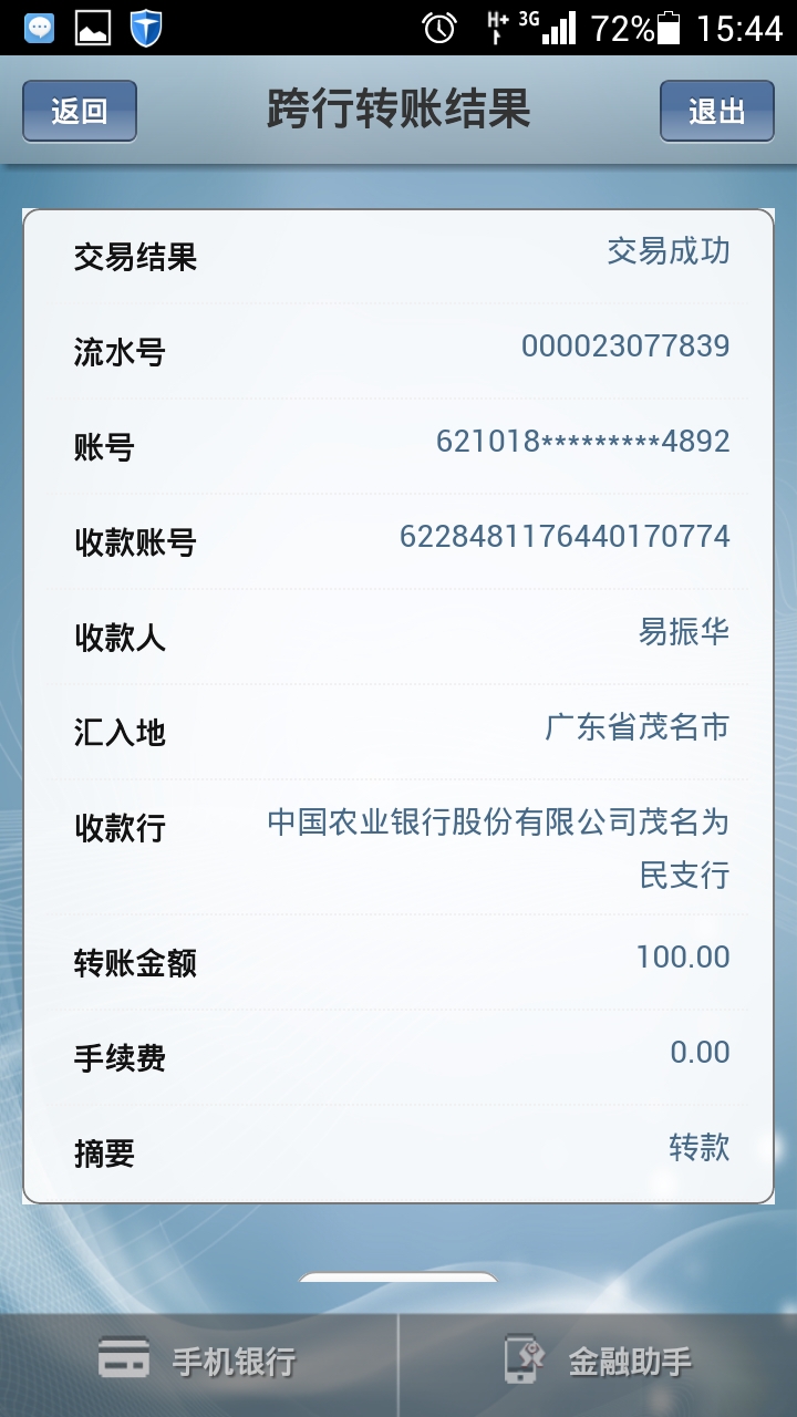 1.中国农业银行卡号:6228481176440170774这个就是易振华银行卡,中国农业银行【广东农行】茂名为民支行的地址:茂名市双山一路81号大院首层