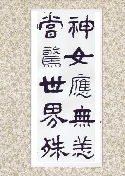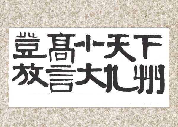 但廖静的楷体讲究的绘画美,在魏碑中加入行草笔法,在哲理学上讲究阴阳、虚实与变化,讲究全帖的整体美,讲究字与字的关系。