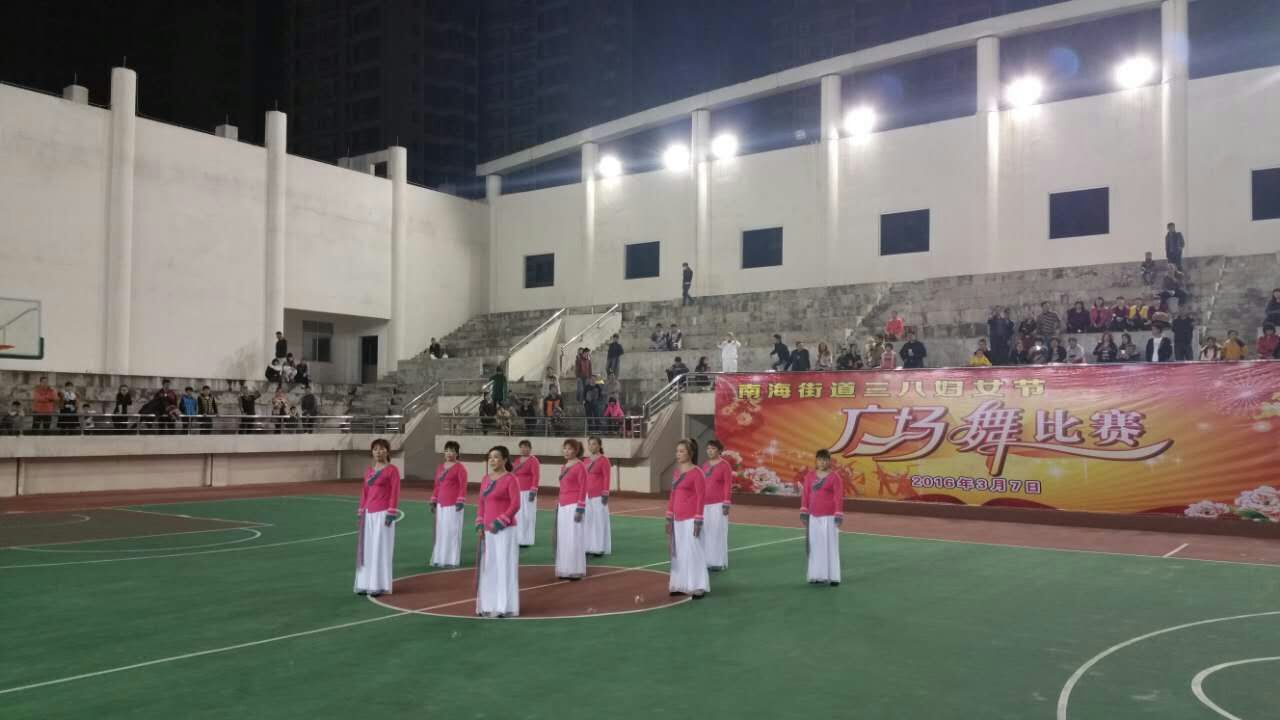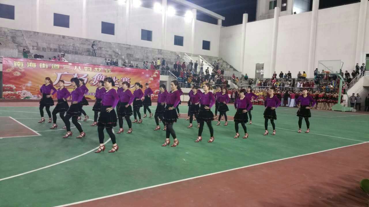 南海街道举行“三.八”妇女节广场舞比赛。为响应电白区委、区政府全民参与健身活动 的号召,活跃“三.八”节的气氛,丰富社会文化生活,打造自信自强、健康向上的新时期女性风采, 引导和带动广大妇女同胞以更好的精神状态投入精神文明建设,南海街道于3月7日晚在原茂港区体 育馆举办了广场舞比赛,充分展示了街道妇女群众幸福健康、昂扬向上的精神风貌。