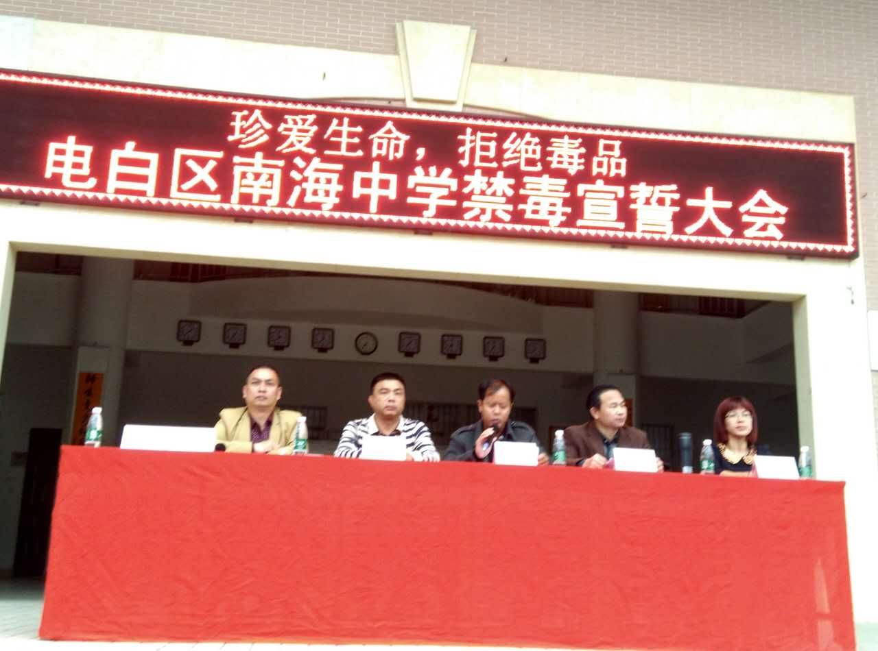 3月28日上午,南海街道党工委、办事处组织南海中学全体师生在该校举行了禁毒誓师大会,全校师生共2200多人参加了大会。会议首先由该校学生代表作了发言和该校校长作了讲话;随后南海街道党工委书记潘会同志作了讲话,指出了开展禁毒工作的重要性,强调了区委、区政府和街道党工委、办事处打击涉毒犯罪的决心,提出了进一步做好禁毒工作的具体措施。