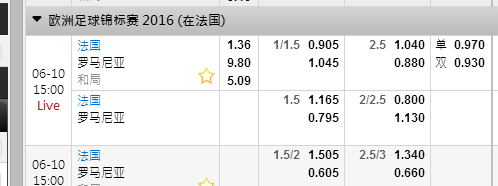 首先言明,这不是推赌,小孩子与敏感之人,反赌网警,切莫多情而介意。此举纯粹是为“国家合法发行的慈善型足彩”而分析下盘口。 法国一帮青年才俊,霸道也飞扬,但揭幕战,在此家门口,不知是否会却场;而罗马尼亚,球风硬朗,历来强队与之对阵,均占不到任何益处。 [attachmentid=350531]
