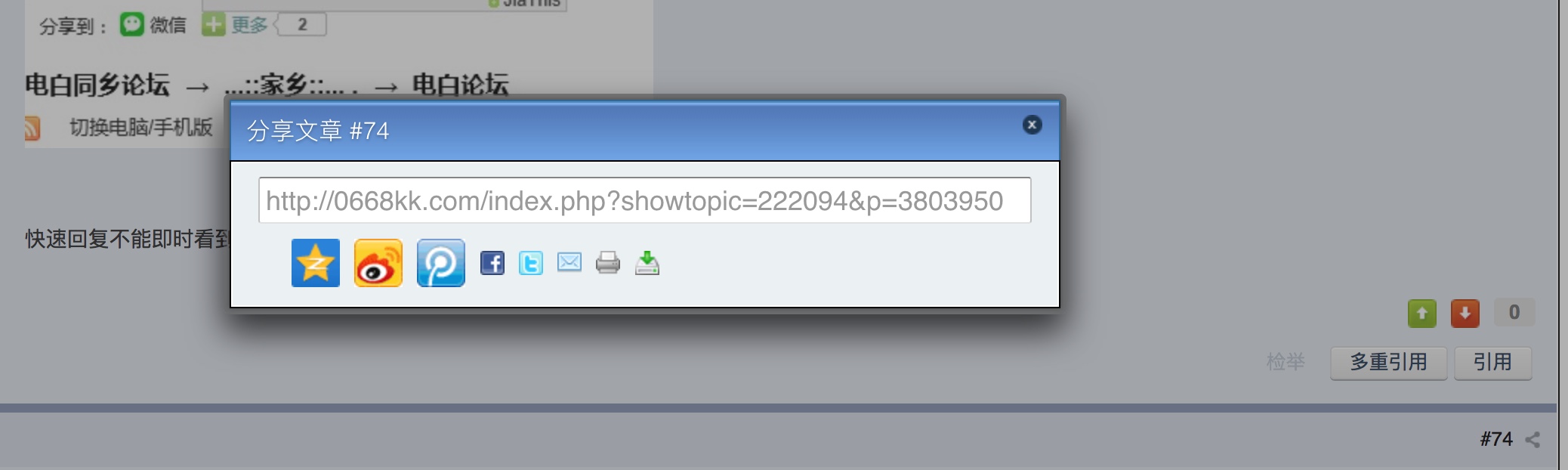 MingNi 管理员 管理员 注册 2005-04-12 消息 130 反馈评分 25 点数 11 性别 男 2016-08-13 #65 湖海山人 说: 回复有点不方便,看到下面了,还得回到上面。 点击展开... 已修正,帖子下方新增微信、QQ空间、新浪微博、腾讯微博等分享链接,保留facebook、twitter分享。