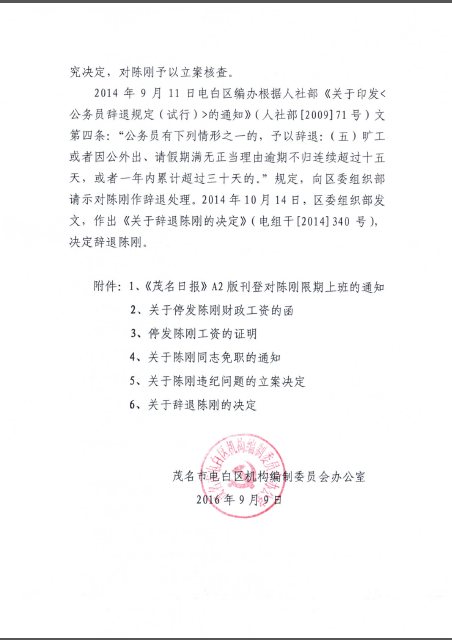 附件:1、《茂名日报》A2版刊登对陈刚限期上班的通知