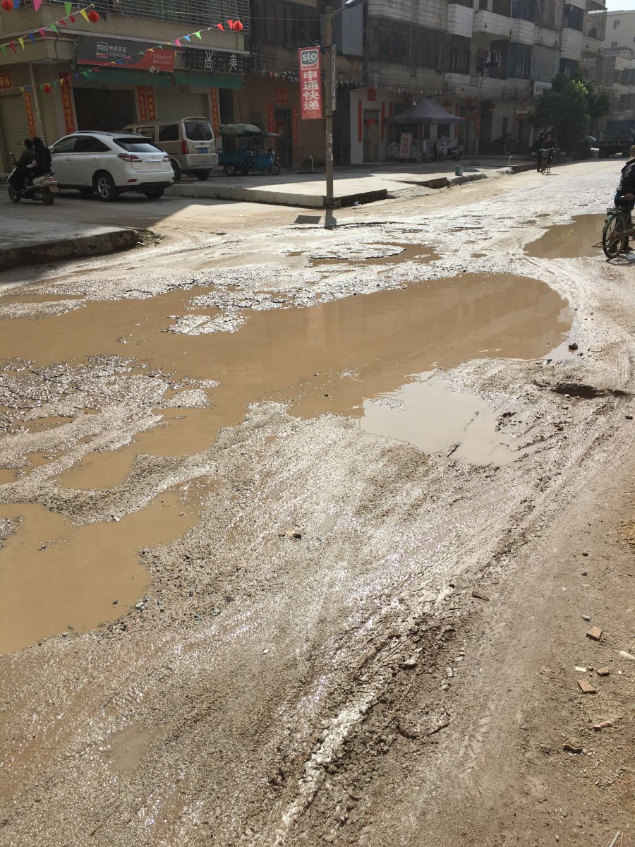 人们都说春雨贵如油,但是通往电白城区的电白实验中学的必经之路惨不忍睹!!!不信,请区相关部门领导驱车又或者步行过来体验一下这种一步三坑的感觉!不知道看到此贴的电白区城管局领导和电白区实验中学的领导和师生们作何感想???请区城管部门予以回应???此条通往实验中学的路究竟要等到什么时候才能彻底改造???