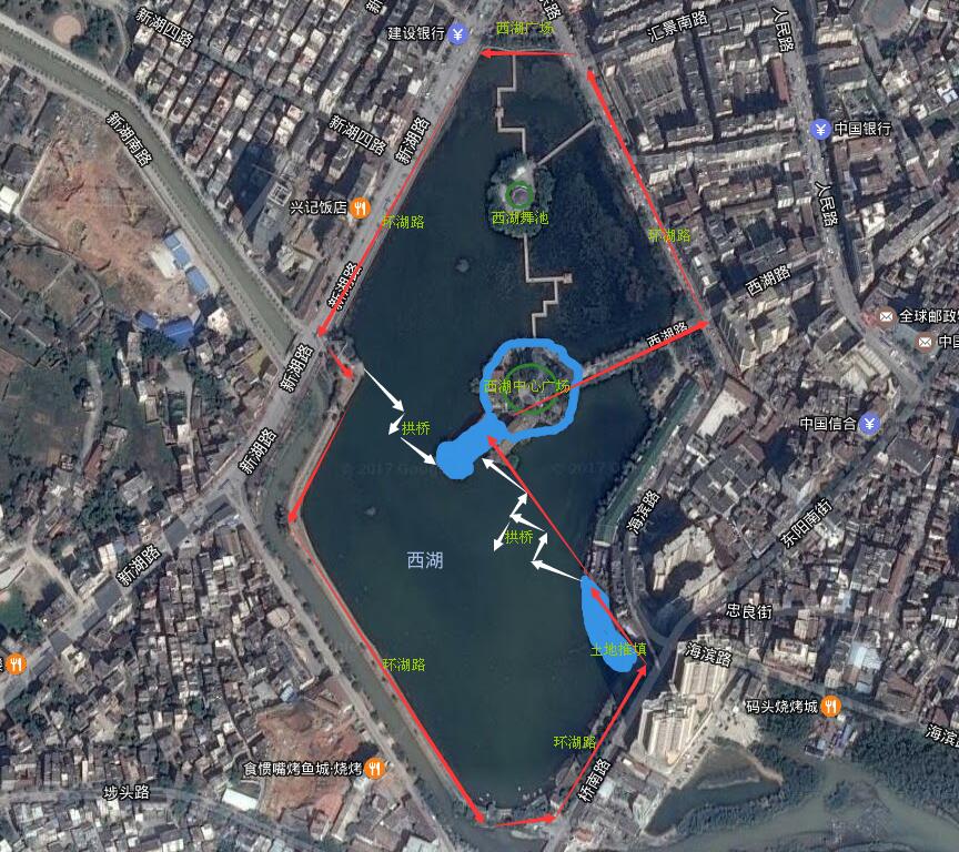 今天有空就去环湖逛了一下,从汇景到西提到桥头,断了