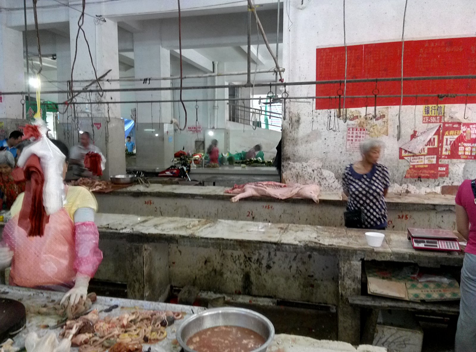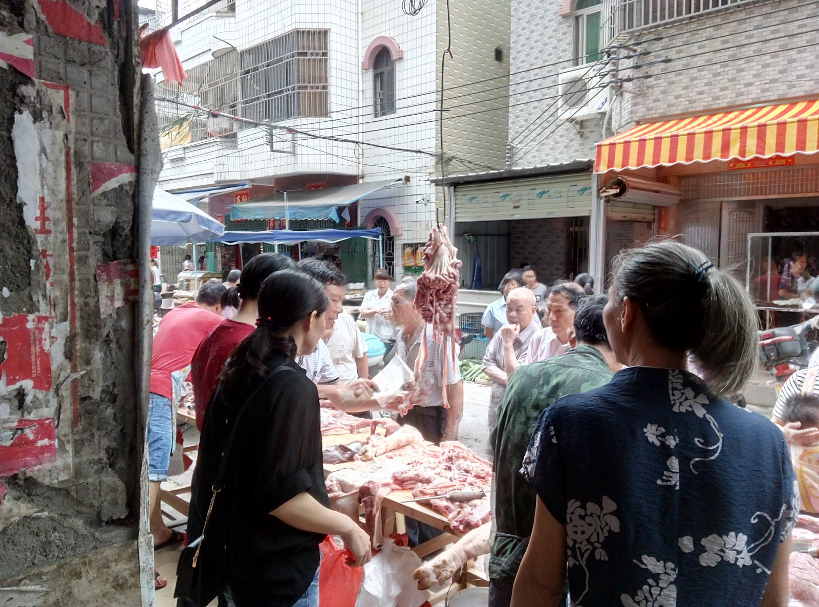 今天我天一亮就去春华学校后门菜市买菜,发现没猪肉卖,一问才知:整个三角圩地区今天屠夫们均罢市,原因是该地区肉联厂禁止屠夫们自宰生猪上市,必须到肉联厂批发猪肉销售,但屠夫们不愿意故集体罢市。惨了!今天市民餐桌上没猪肉了,不知明天如何。