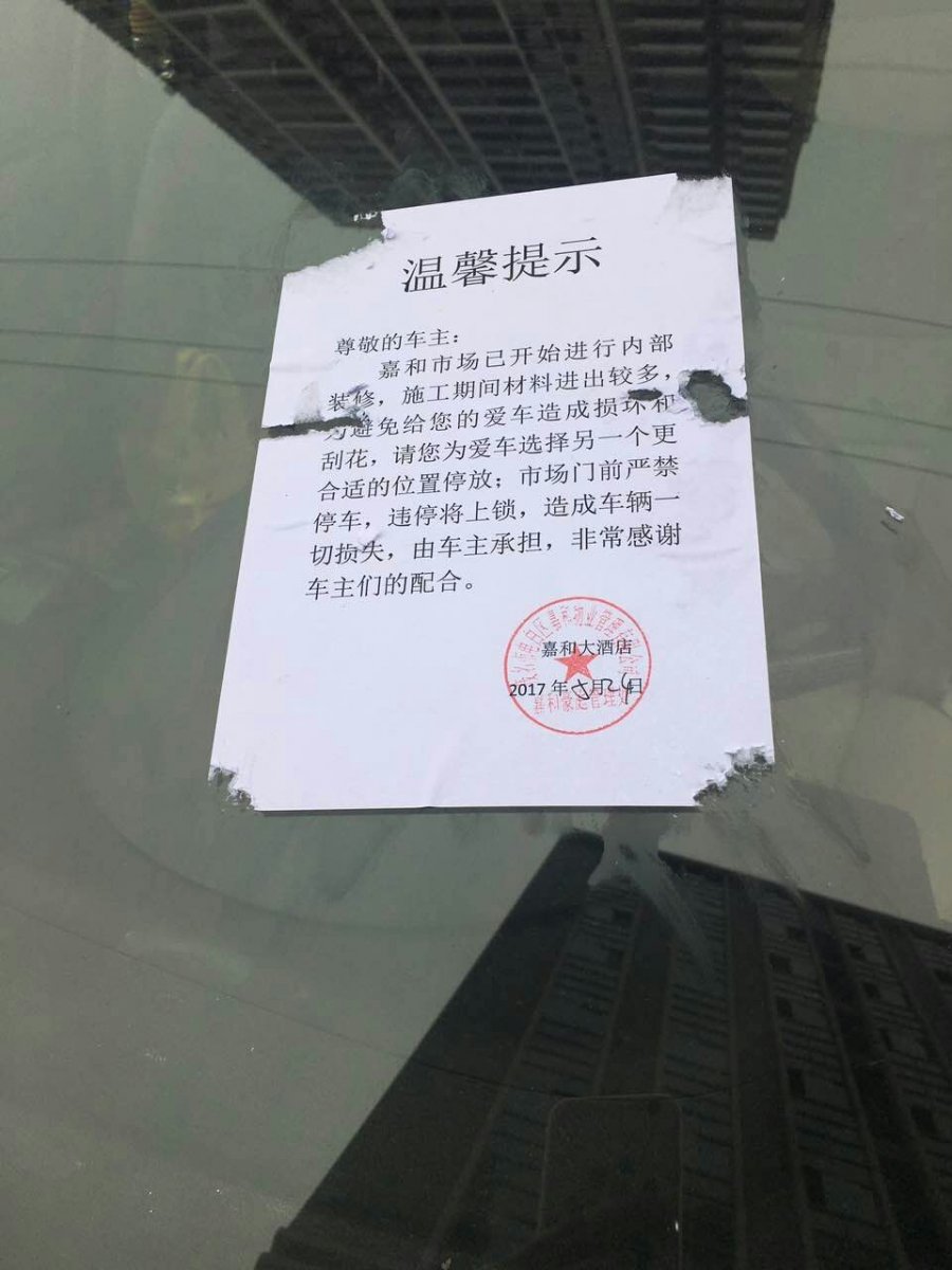 九问:茂名市公安局电白分局交通警察大队,请问贵单位,嘉和豪庭现北面大门口的公路是否属于“茂名市电白区嘉和物业管理有限公司”的私有财产,为什么业主合理把车停在公路边却每次第二天早上业主的汽车挡风玻璃上均被一张用胶水涂满的警告信死死地粘着,有时候甚至被铁链锁车,上面署名“嘉和物业处”。