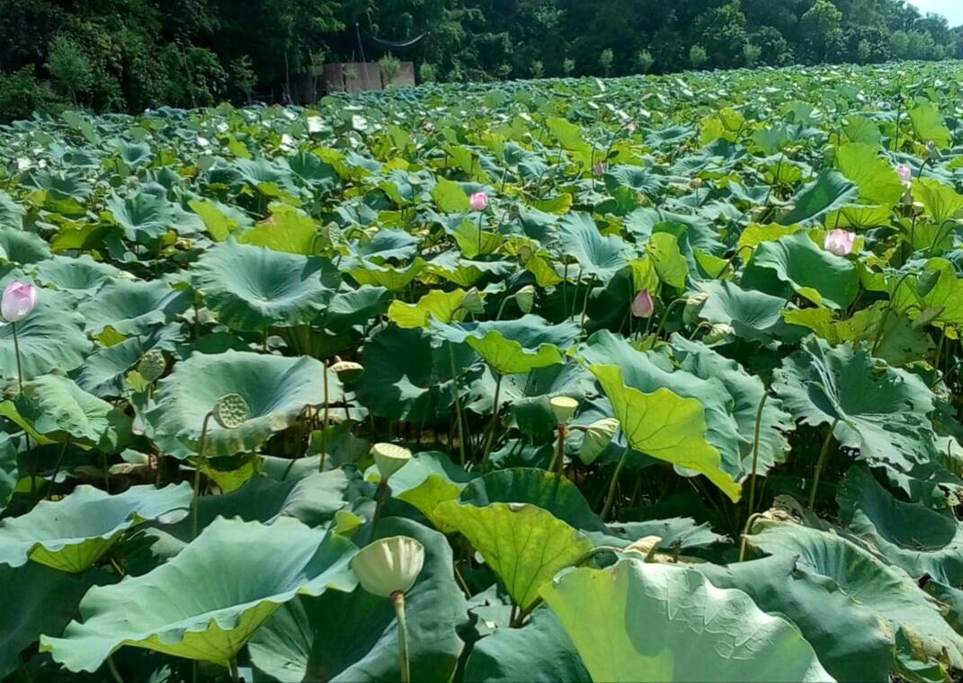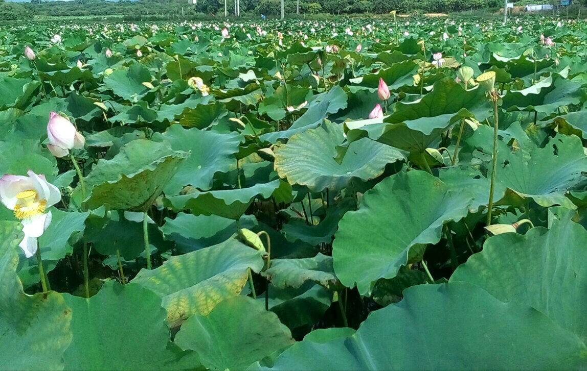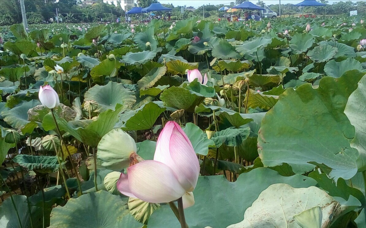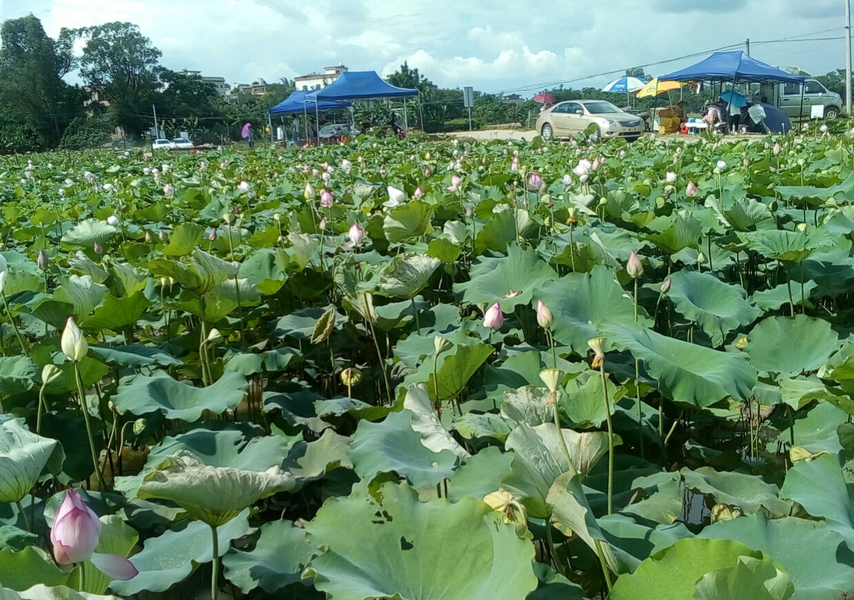 今搭乘朋友车去吸吸,朋友车开导航,先到观珠路口向指示牌向葛山风情村方向,大栝六七公里,向右入村道有点窄,到达后有些人在观赏,停车位很少,配套还不大行,只观看荷花还行,其它方面不好说,听现场管理人员话,现还有很多荷花没竞放~~,早上与傍晚观看就特美?不知真否?瓦们是中午去的,拟似还有很多没竞放,也有点晒~~