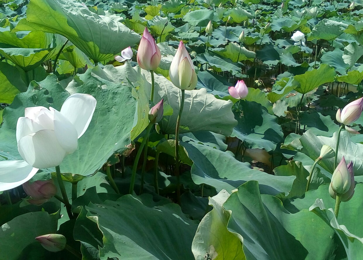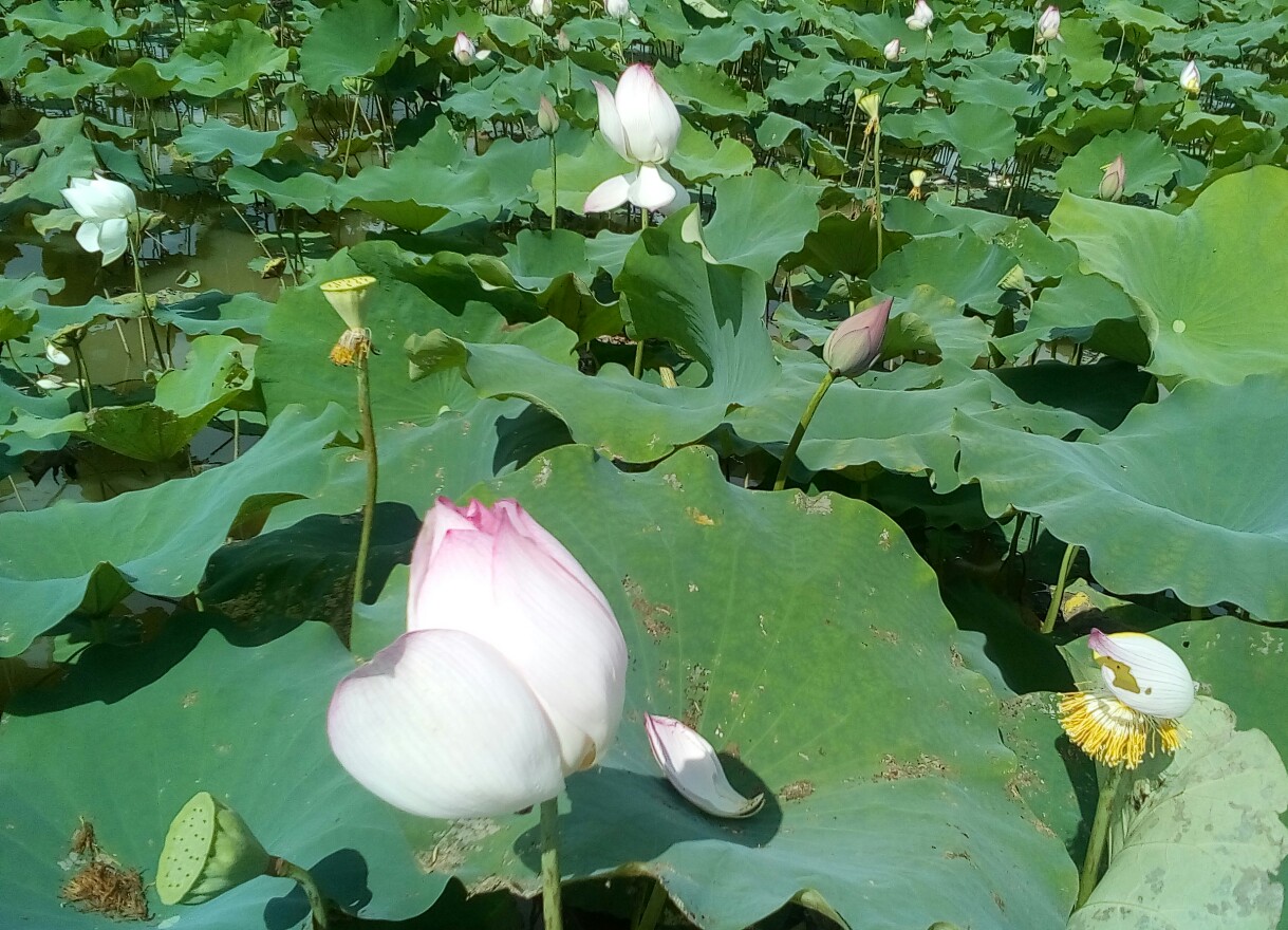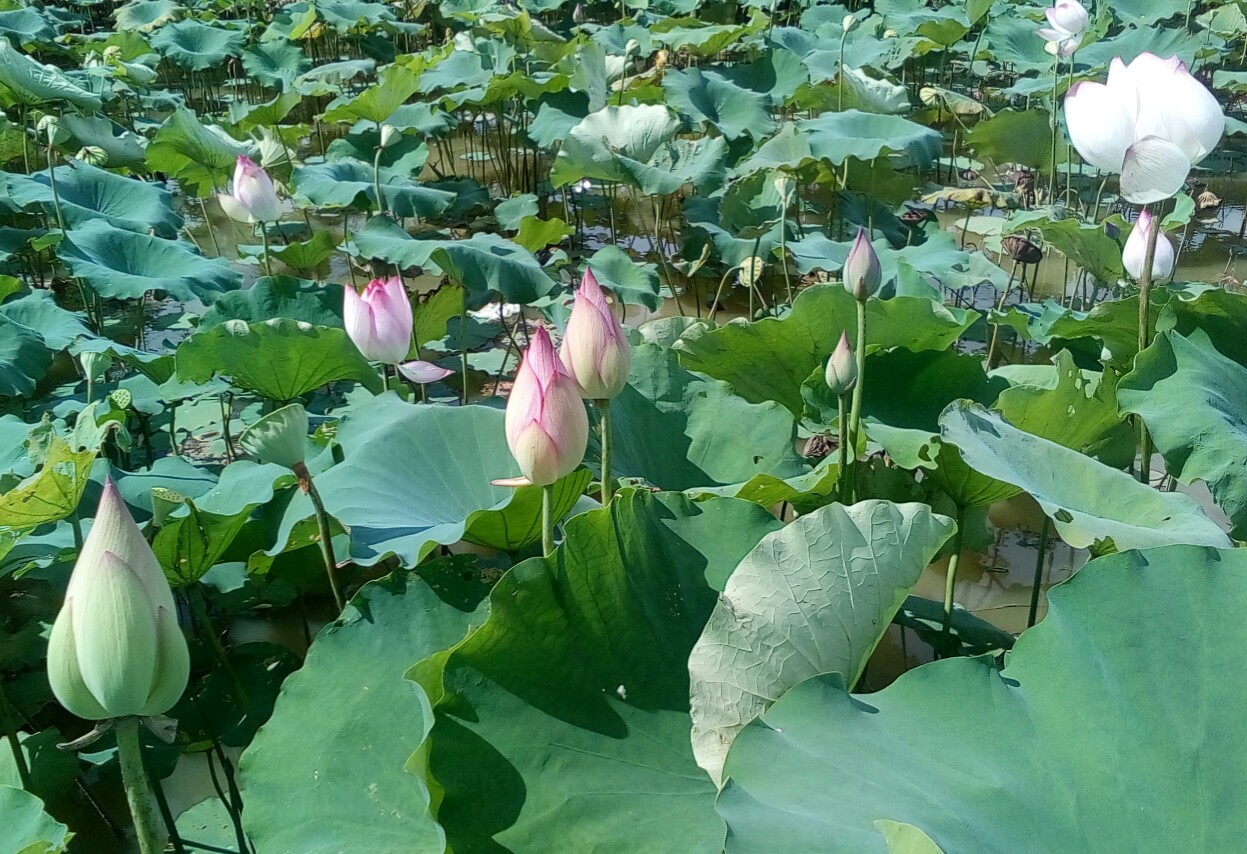 今搭乘朋友车去吸吸,朋友车开导航,先到观珠路口向指示牌向葛山风情村方向,大栝六七公里,向右入村道有点窄,到达后有些人在观赏,停车位很少,配套还不大行,只观看荷花还行,其它方面不好说,听现场管理人员话,现还有很多荷花没竞放~~,早上与傍晚观看就特美?不知真否?瓦们是中午去的,拟似还有很多没竞放,也有点晒~~