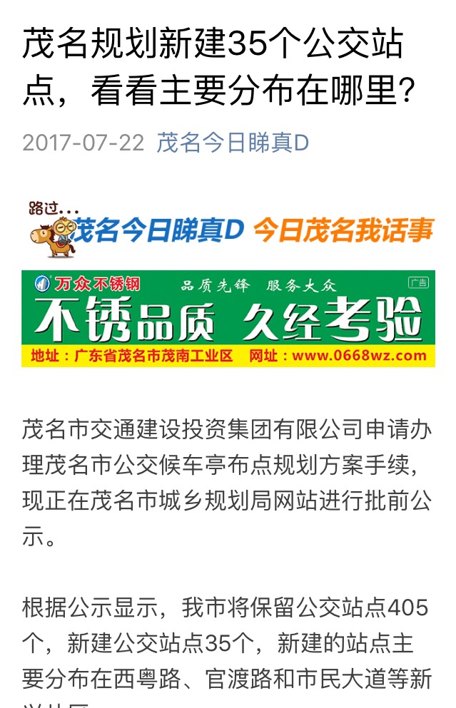 茂名新规划的公交路线没有一条是走水东的,也基本上没有电白什么事情…由此可见茂名从来没有把电白当成一家人…