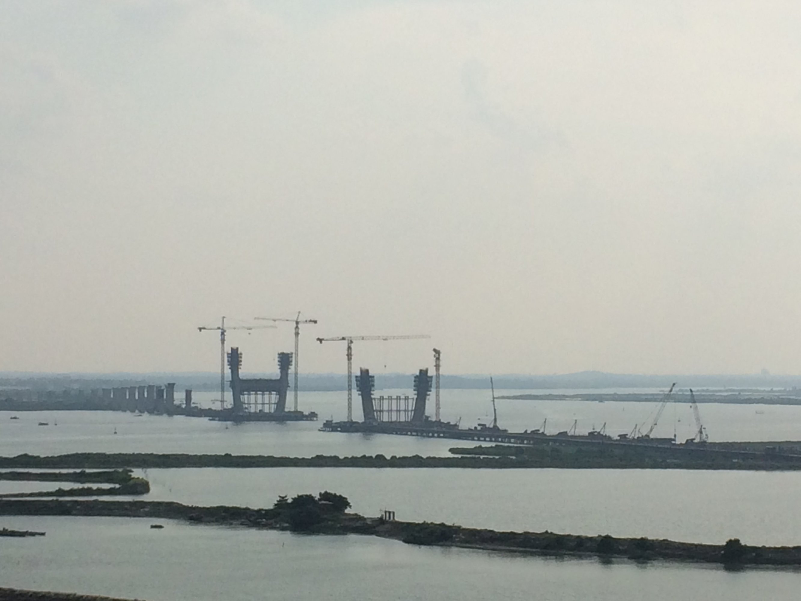 媒体网友参观水东湾大桥建设现场。茂名晚报记者李颜东 摄