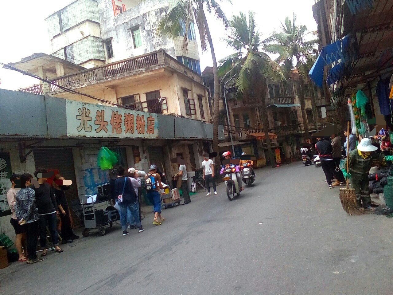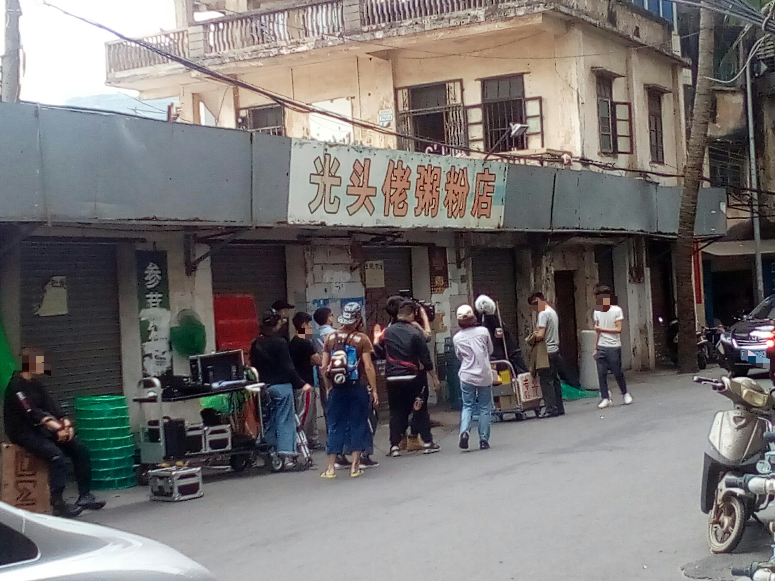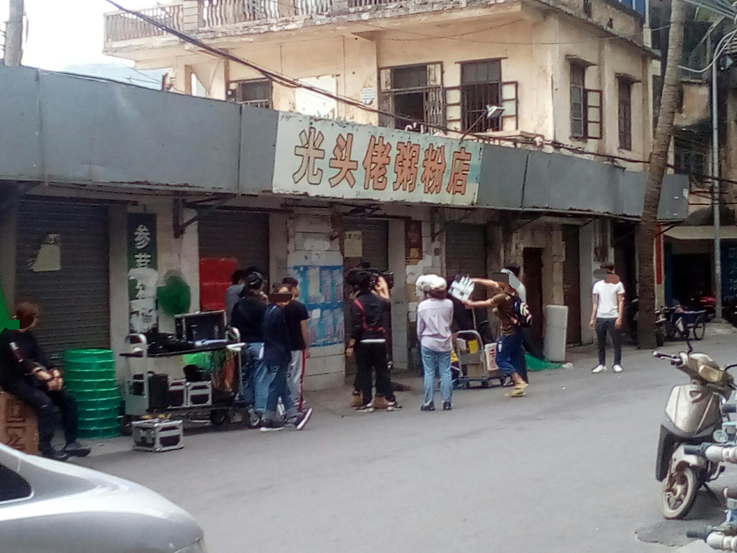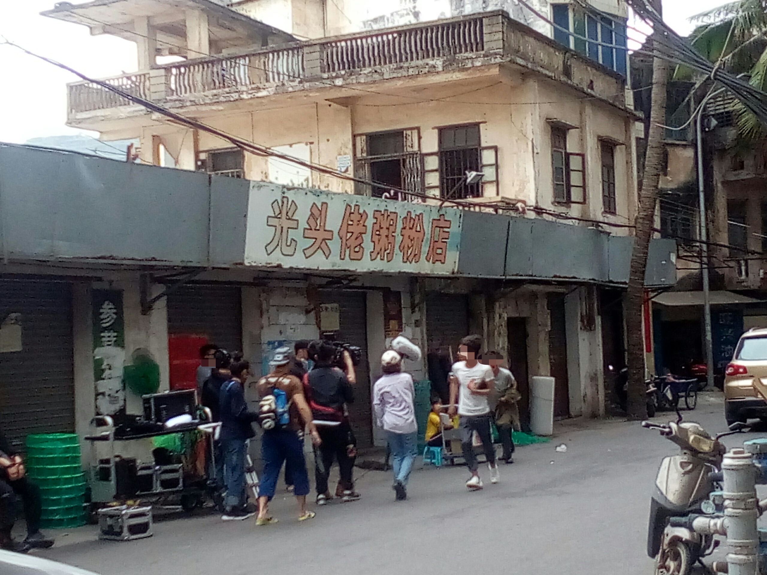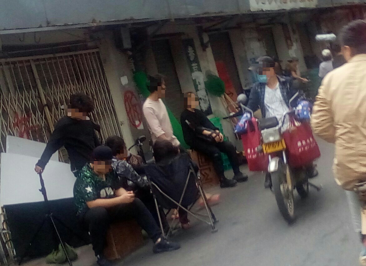 有好多人围观与途经的都停顿下来看拍等,也拟阻了下他她们时间,貌似有看现场景,也不知是拍何年代的,看衣着打扮,拟是民国解放初~??拟见一男子徒步间,突然停顿并蹬在一推着杂物的路边摊,一穿着黄色衣服的小女孩摊前询问等?~后见一男子从其身而过~期间发生什么不知~后见此蹬在地上男子~一路追赶途经身后过的男子~~