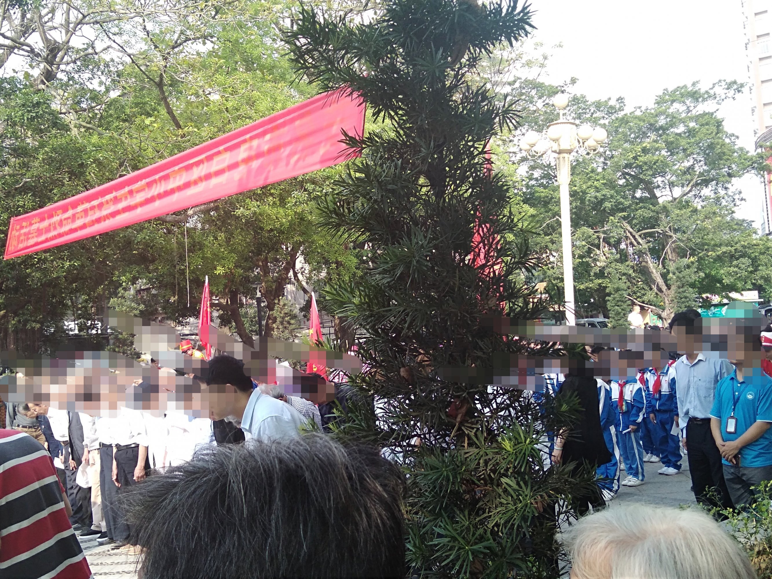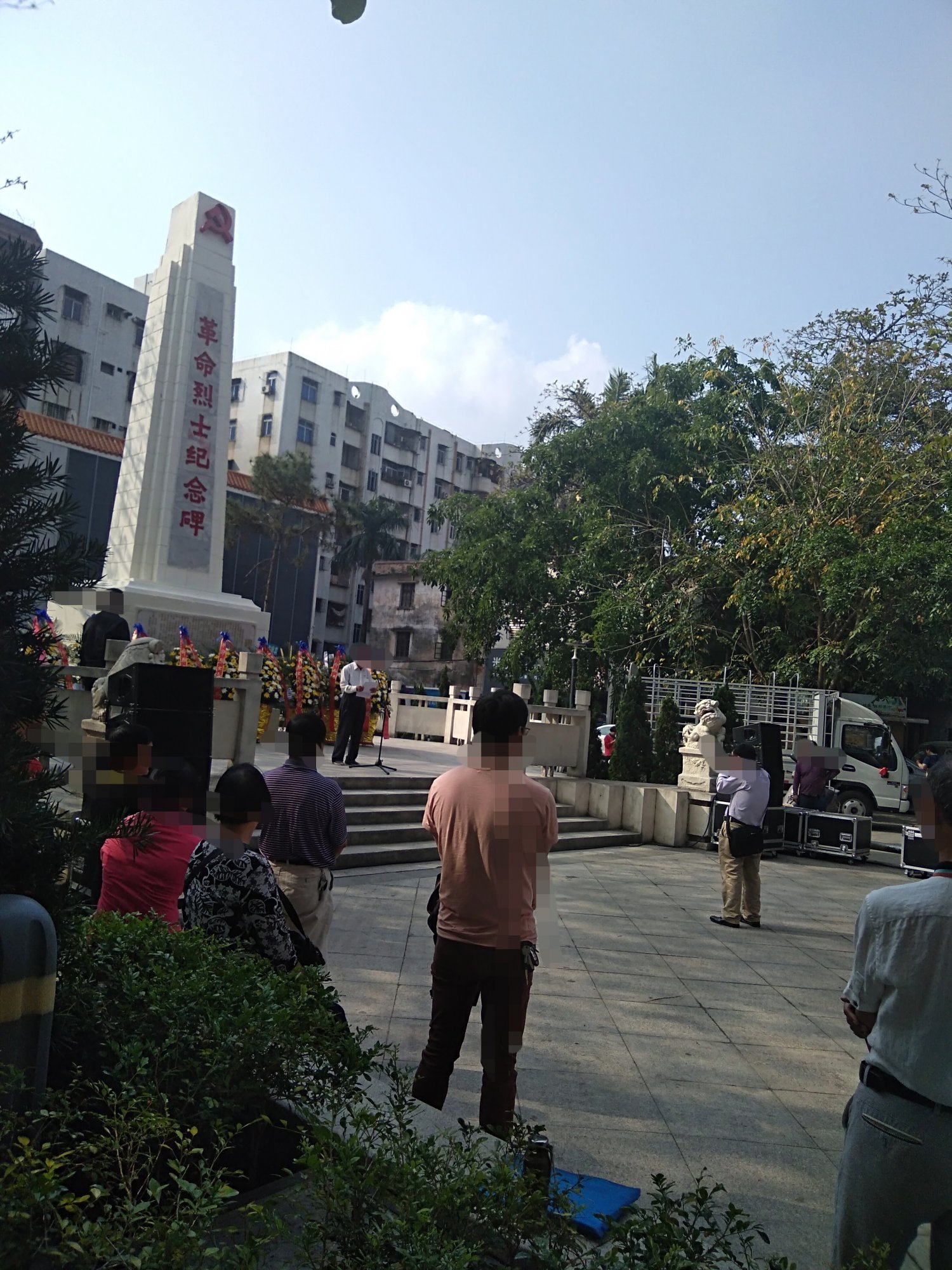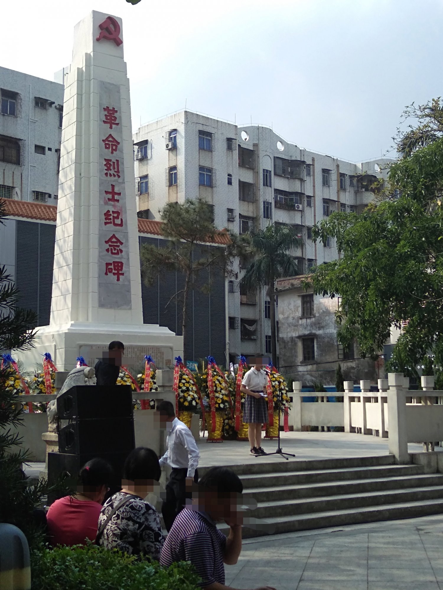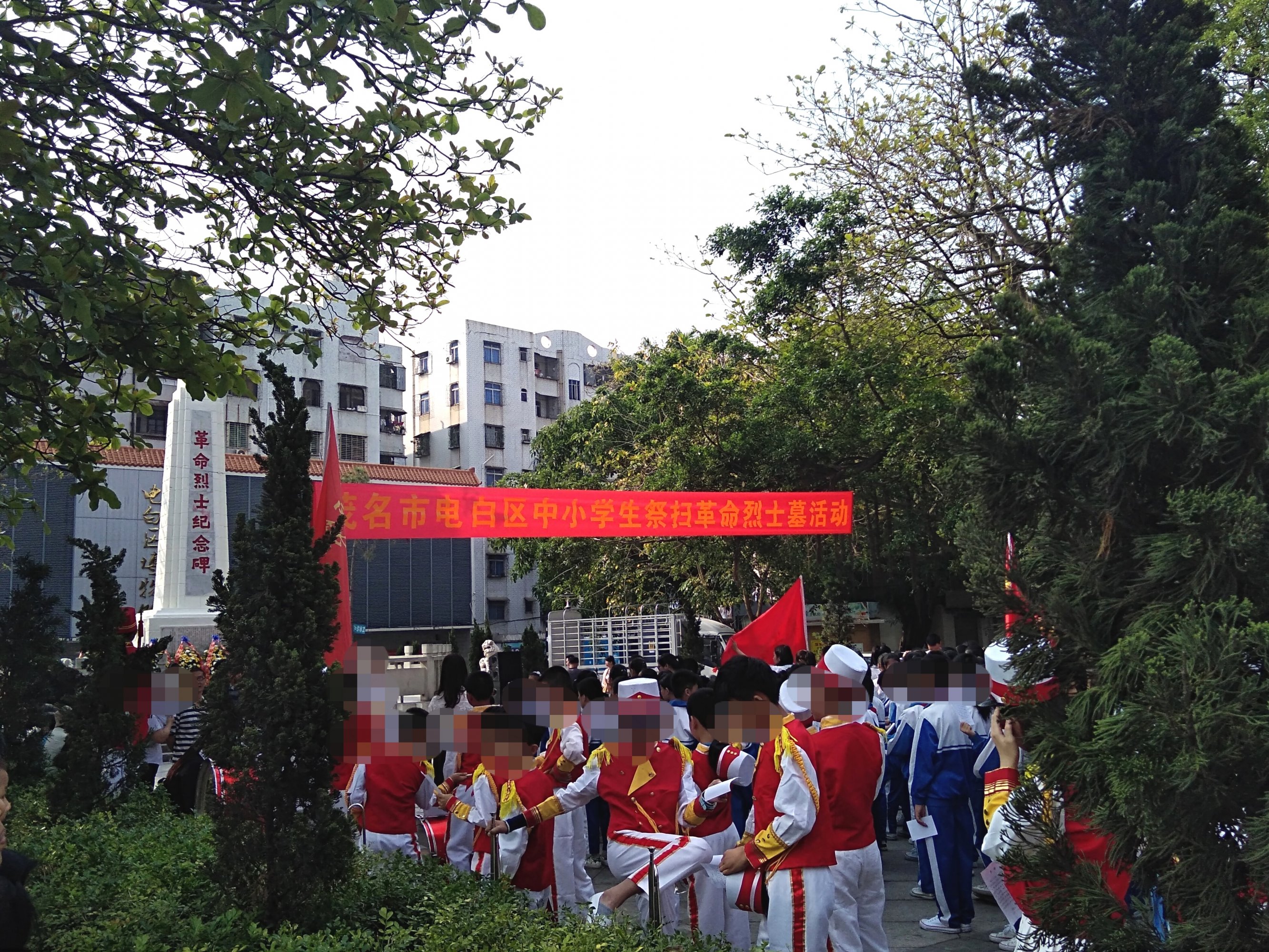 今晨风和日丽,途经东湖见有交巡特维持交通等,也走近吸吸,已见在东湖革命烈士纪念碑前聚集了好多学生及周边群众,随着时间,己开始祭扫革命烈士墓活动,听下简介,有电白中小学校学生,仪仗队,老游击战士,革命先烈后裔,老促会…,电白区四套班子代表,及相关部门…、等吧?我也在现场跟住音乐与现场节奏观看并默哀等,也算对革命先烈们的尊爱尊重尊意与深切怀念等吧!!! [aasmp3]307376[/aasmp3] [aasmp3]307377[/aasmp3]