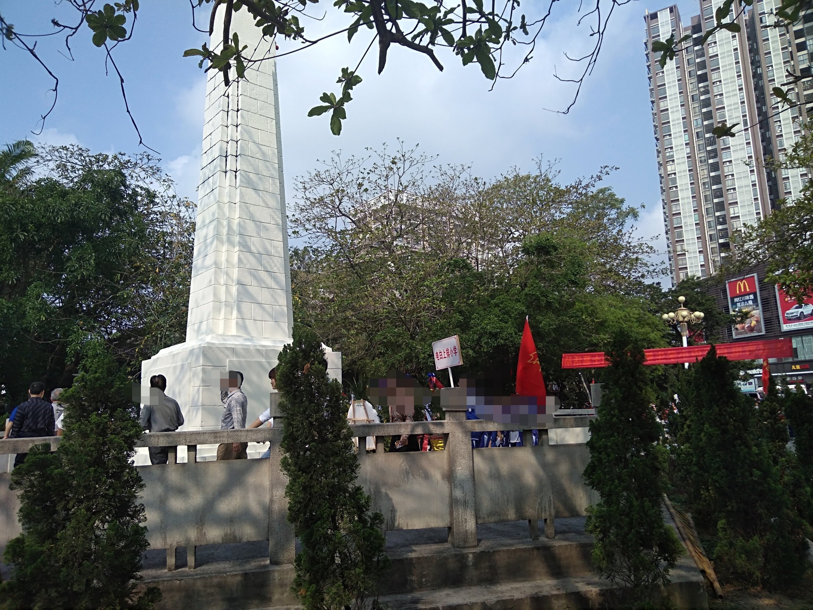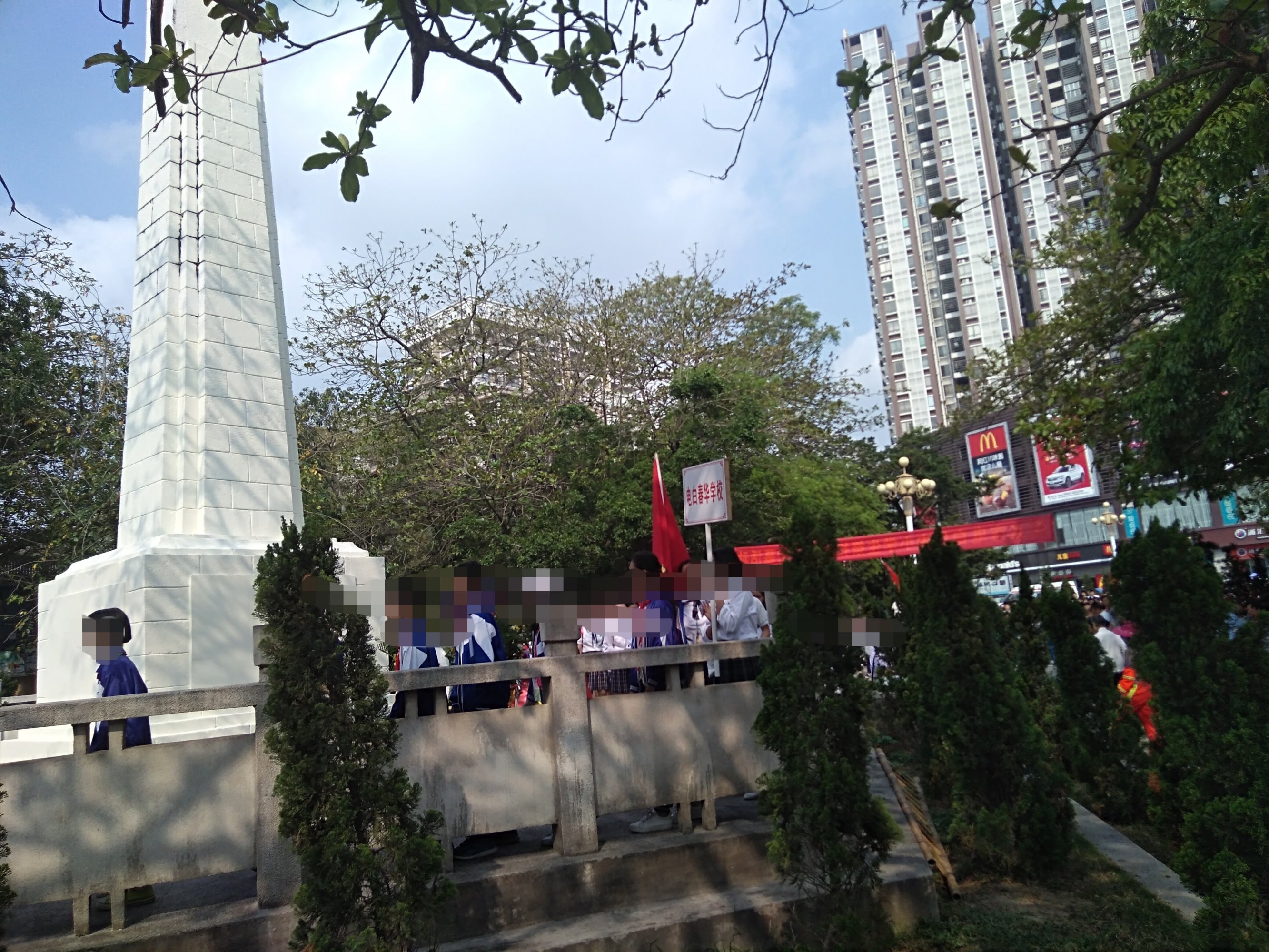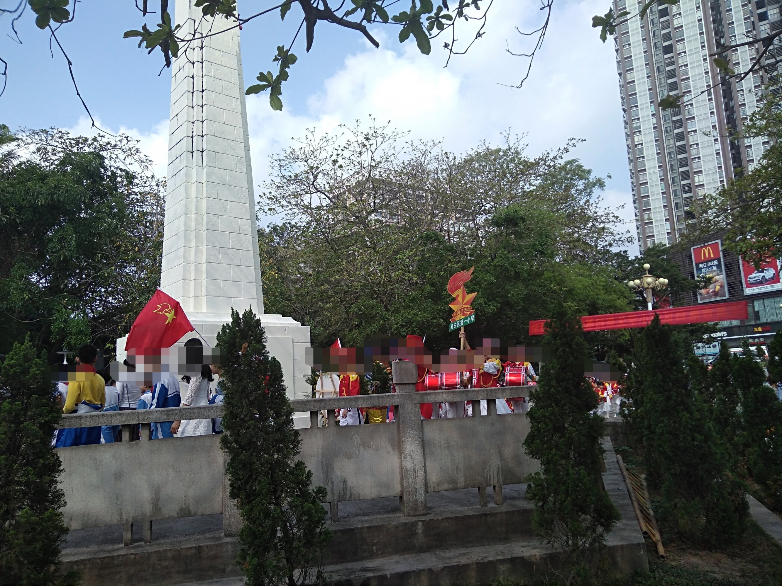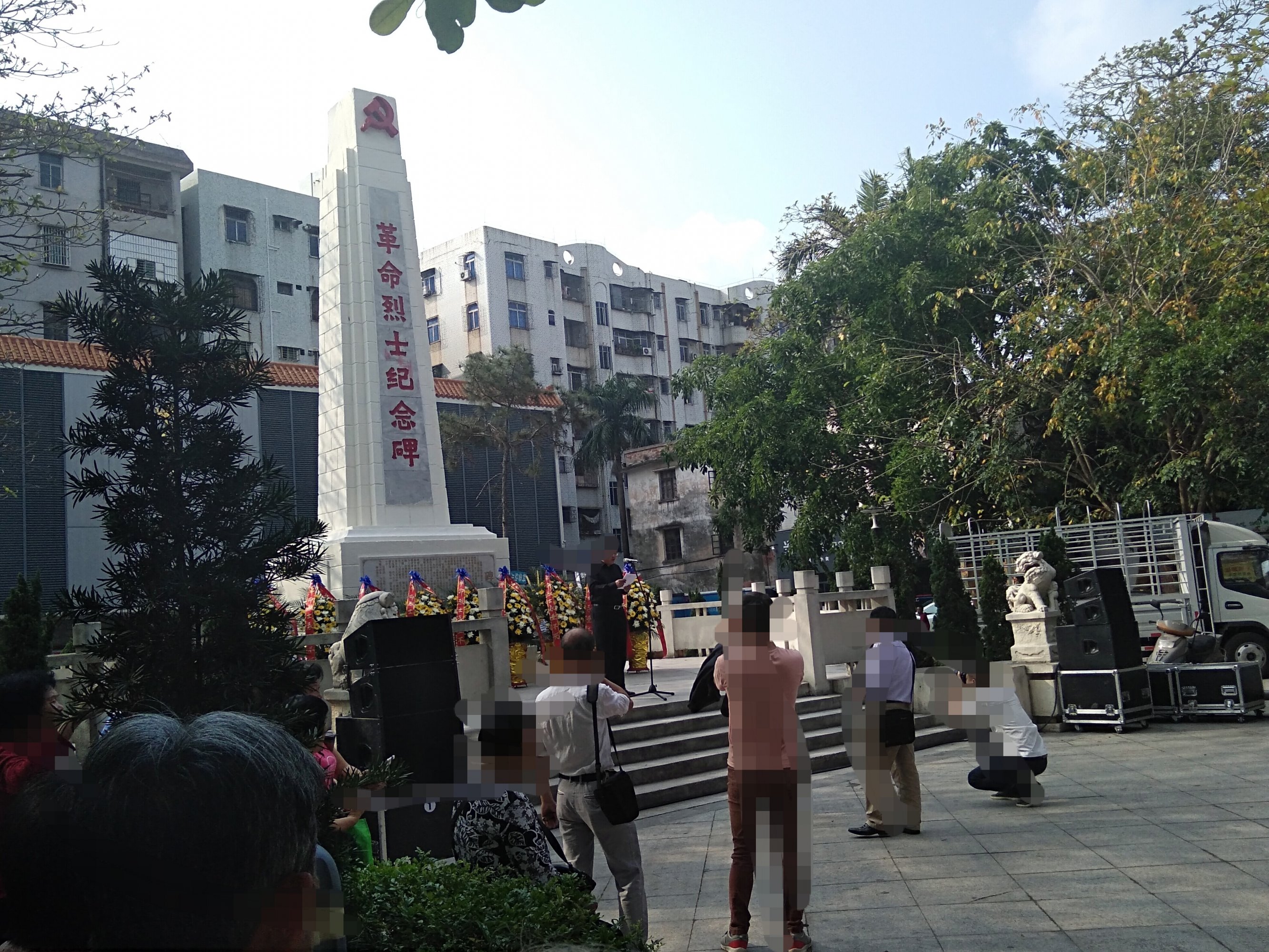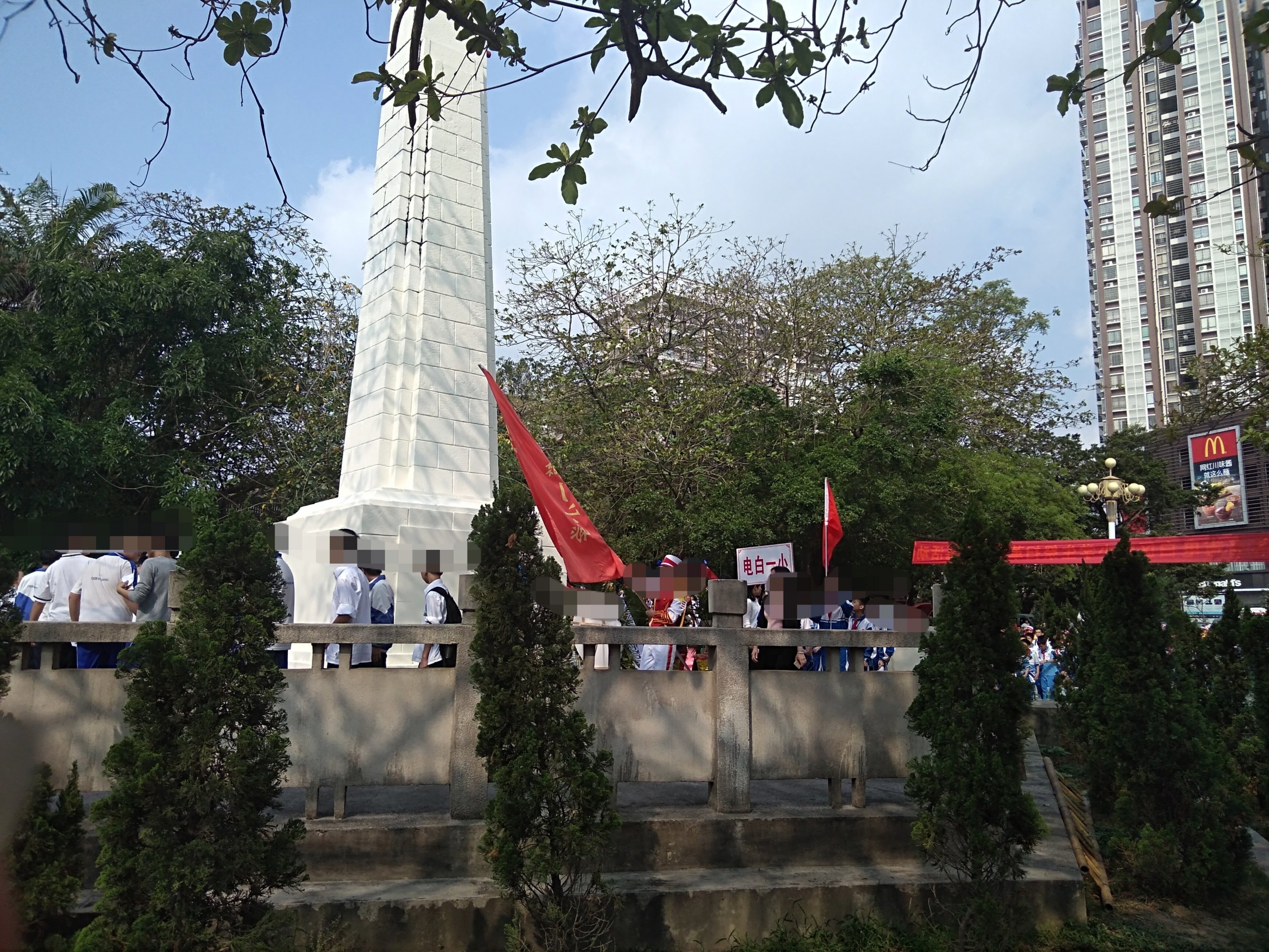 今晨风和日丽,途经东湖见有交巡特维持交通等,也走近吸吸,已见在东湖革命烈士纪念碑前聚集了好多学生及周边群众,随着时间,己开始祭扫革命烈士墓活动,听下简介,有电白中小学校学生,仪仗队,老游击战士,革命先烈后裔,老促会…,电白区四套班子代表,及相关部门…、等吧?我也在现场跟住音乐与现场节奏观看并默哀等,也算对革命先烈们的尊爱尊重尊意与深切怀念等吧!!! [aasmp3]307376[/aasmp3] [aasmp3]307377[/aasmp3]