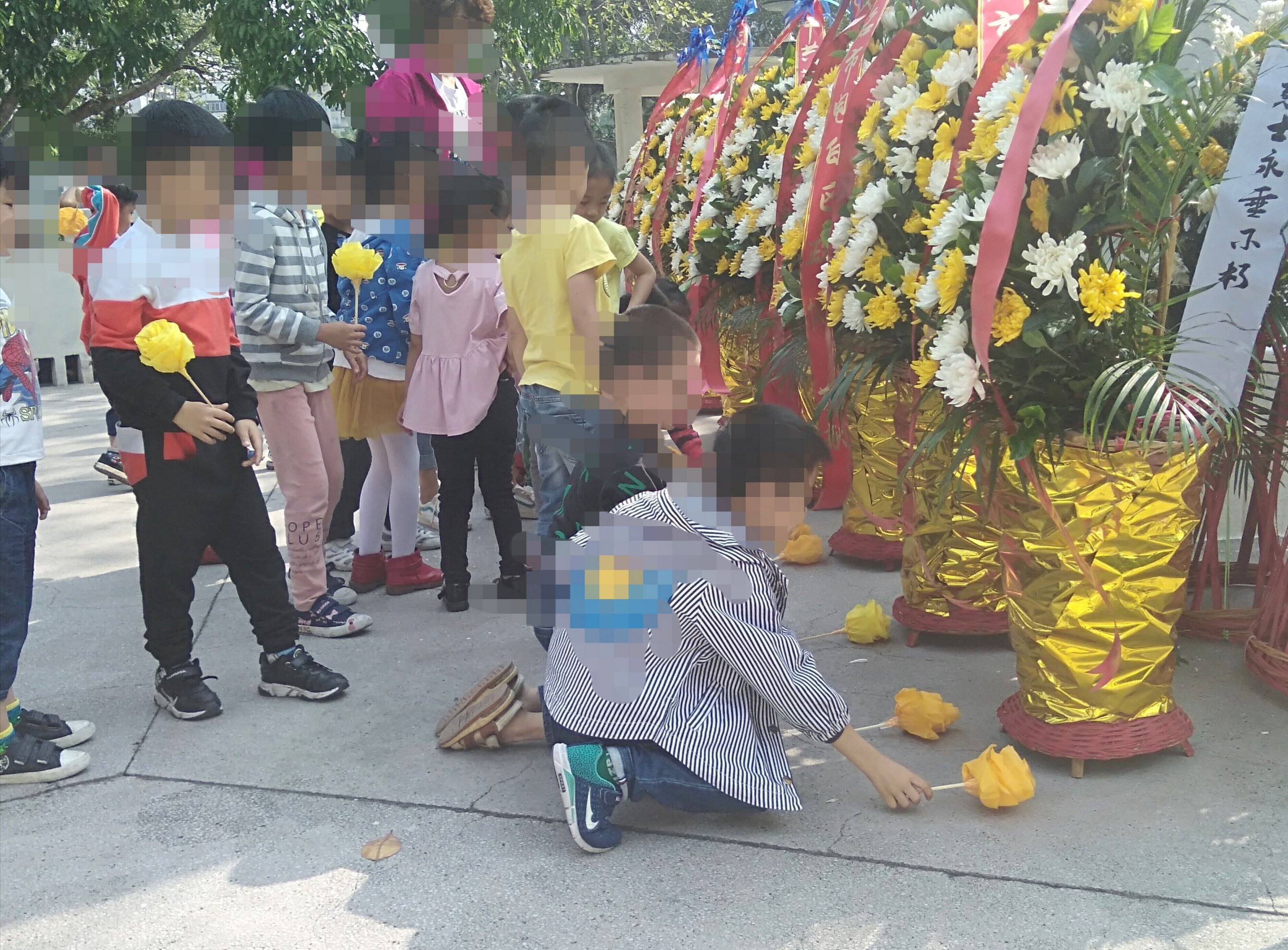 或还有一亮点吧?,瓦先说一下,其实貌似哪个幼儿园的无所谓,让幼儿园们也来祭扫下革命烈士也是好事吧(或算下课外活动吧)?反正瓦也在最后才见他她们出现在现场,有众多老师与校警护维着,况且时间也配合结合的很短很短,也就几十分钟左右就回去了!!