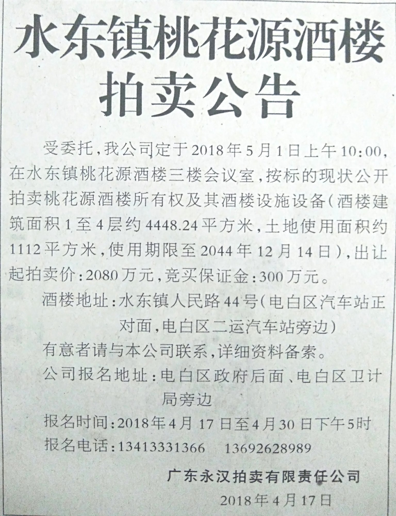 其他 报刊:水东桃花源酒楼拍卖公告 (1人在浏览)
