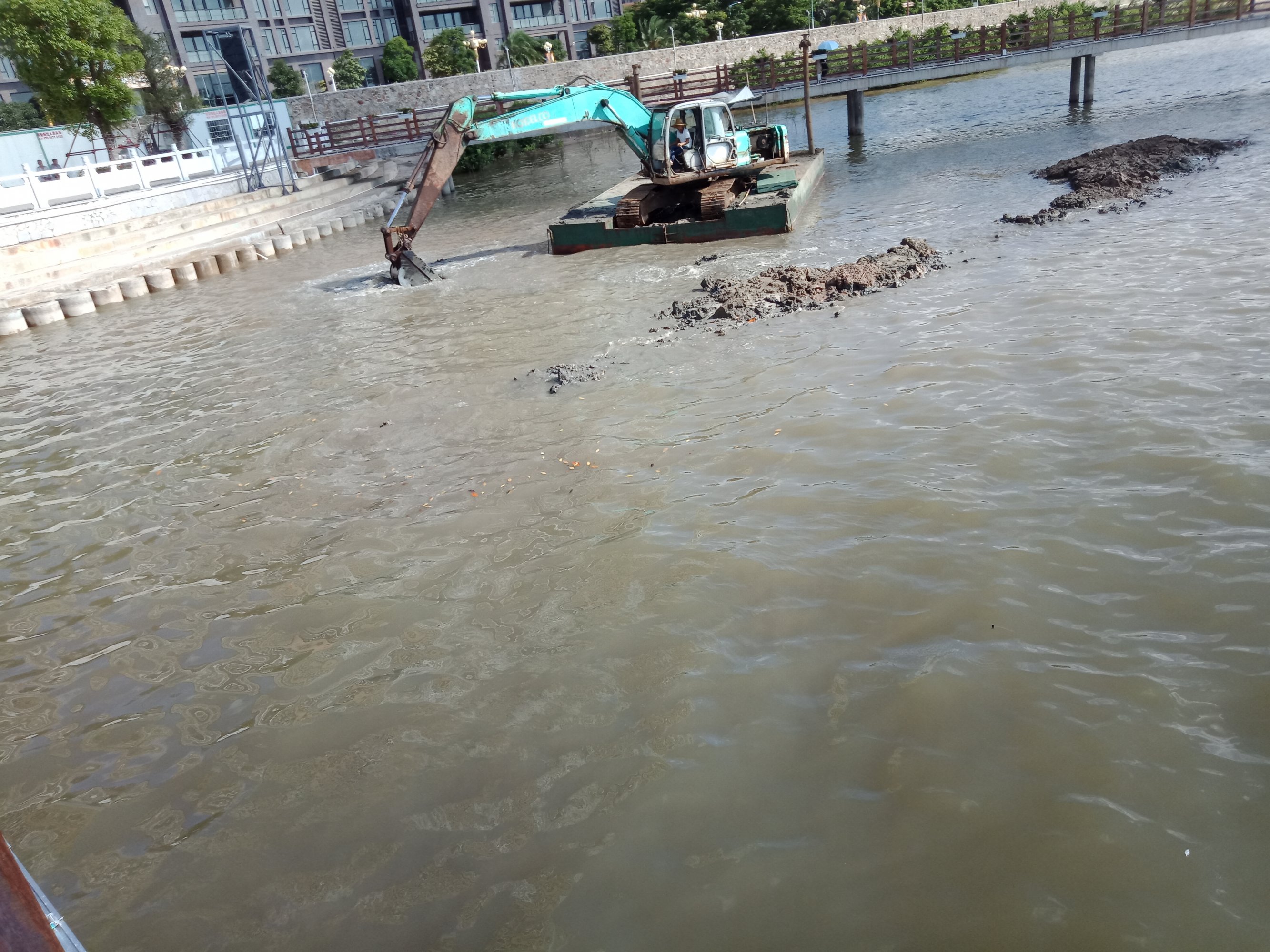 在客观角度来讲,亲水平台那一带没闻到啥味,不过讲真的,涨潮时没闻到,不过在退潮后在观鸳阁的那个闸囗小段有闻到异味,特打开闸口,水排出来时味道更浓,或还有个问题,那有个洗手间,或间接也有助推作用吧?
