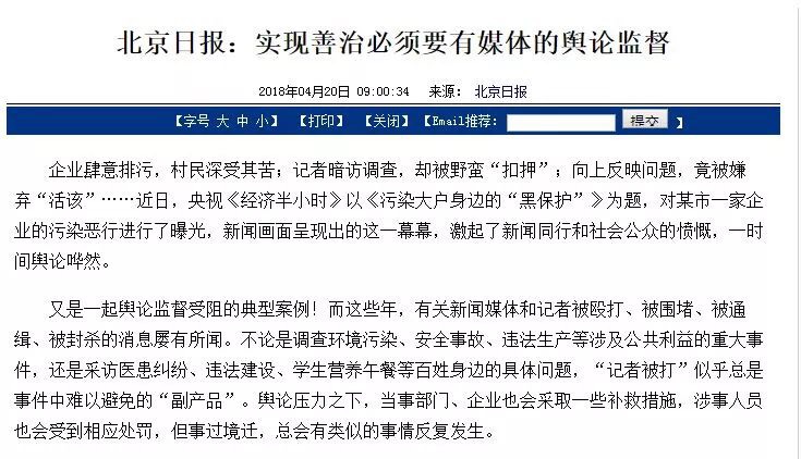相信这些“求舆论监督”的态度都不是装出来媚众的公关之术,而是真正看到了舆论监督缺失带来的种种苦果,背后是对种种问题的忧患和危机意识。毫不夸张地说,舆论监督就是一个社会的YI苗,媒体通过批评报道给社会种牛痘,在暴露问题中给社会排毒,在释放压力中完成“减压阀”功能,在客观报道中给国人一面正确看待自我和他者的镜子,避免自上而下的认知失调。舆论监督的调零和缺失,带来了很多严重的社会问题。