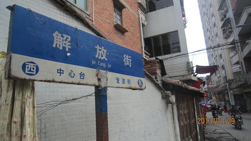 图为水东解放街西面入口,已用灰水刷白的砖墙在文革时期贴大字报、贴海报(内容某日某时某人与某人在大辩论),欢迎革命群众旁听、也曾贴过红一司处决一名无辜者的布告,内容标题:红一司革命军事法庭布告……红一司红色大印是用红墨水临时画成的。当年参与抓人枪毙这名无辜者的三个家伙,对此事一直讳莫如深。只有一个参与抓人的隐隐约约说,当年幼稚,不该做那种事。