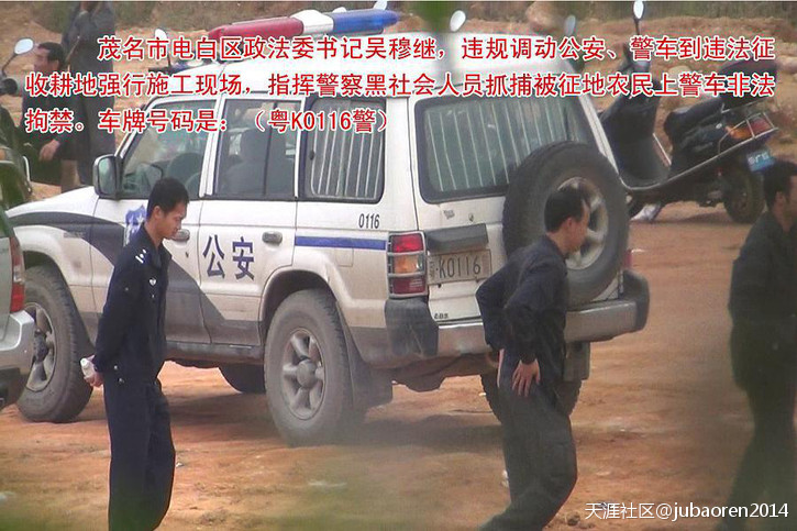 五、被举报人吴穆继,利用其惯用且有效的手法,与坡心镇牛六架村委会书记兼主任陈锐(地方都称其“千万哥”)勾结,拉拢村长和其他白粉头、赌博头、黑社会非法插手介入没有经村民推选的假村民代表,暗箱操作,违法强征牛六架村一千多亩土地,征收面积与事实不符,严重缩水,吴穆继利用公、检、法特权和黑社会势力随意殴打被征地的村民;陈锐利用手上的公权胡作非为,贪污风暴在此盛行却没人问津,原由就是受被举报人吴穆继包庇和保护。另外,2014年3月基层换届选举,牛六架村委会书记兼主任陈锐为了维护其贪污不受干预和怕被揭发,利用被举报人吴穆继为后盾,吴穆继动用300多名警察进村威胁选民的选举事项,将落选村委会书记兼主任陈锐的选票强行作弊,参假了两个票箱共902条票清一色同一字体笔迹的选票进行为陈锐作弊。吴穆继一手遮天,村民失去公平、公开、公正的选举,众人目睹此过程,广大人民群众无可无奈说:“以权压法,官压一切”。被举报人吴穆继显然已经成了“地方老虎”的事实。