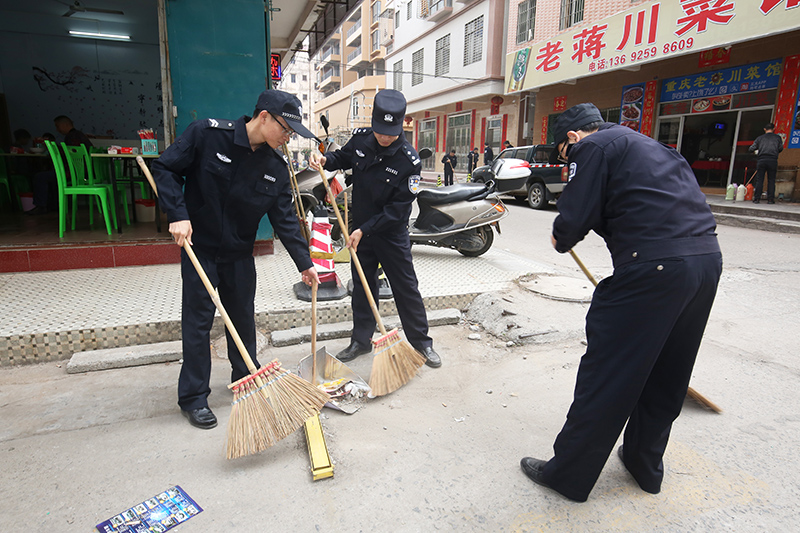 为了改善城乡环境卫生面貌,12月15日上午,茂名市公安局电白分局积极响区委区政府的创卫工作要求,对包联帮扶的三角圩社区开展创卫整治行动。行动中,民警们拿起扫把对道路、辖区居民住宅、出租屋、空屋、卫生死角等区域进行全面清扫,并积极发动群众参与到创卫工作中。(转自:平安电白)