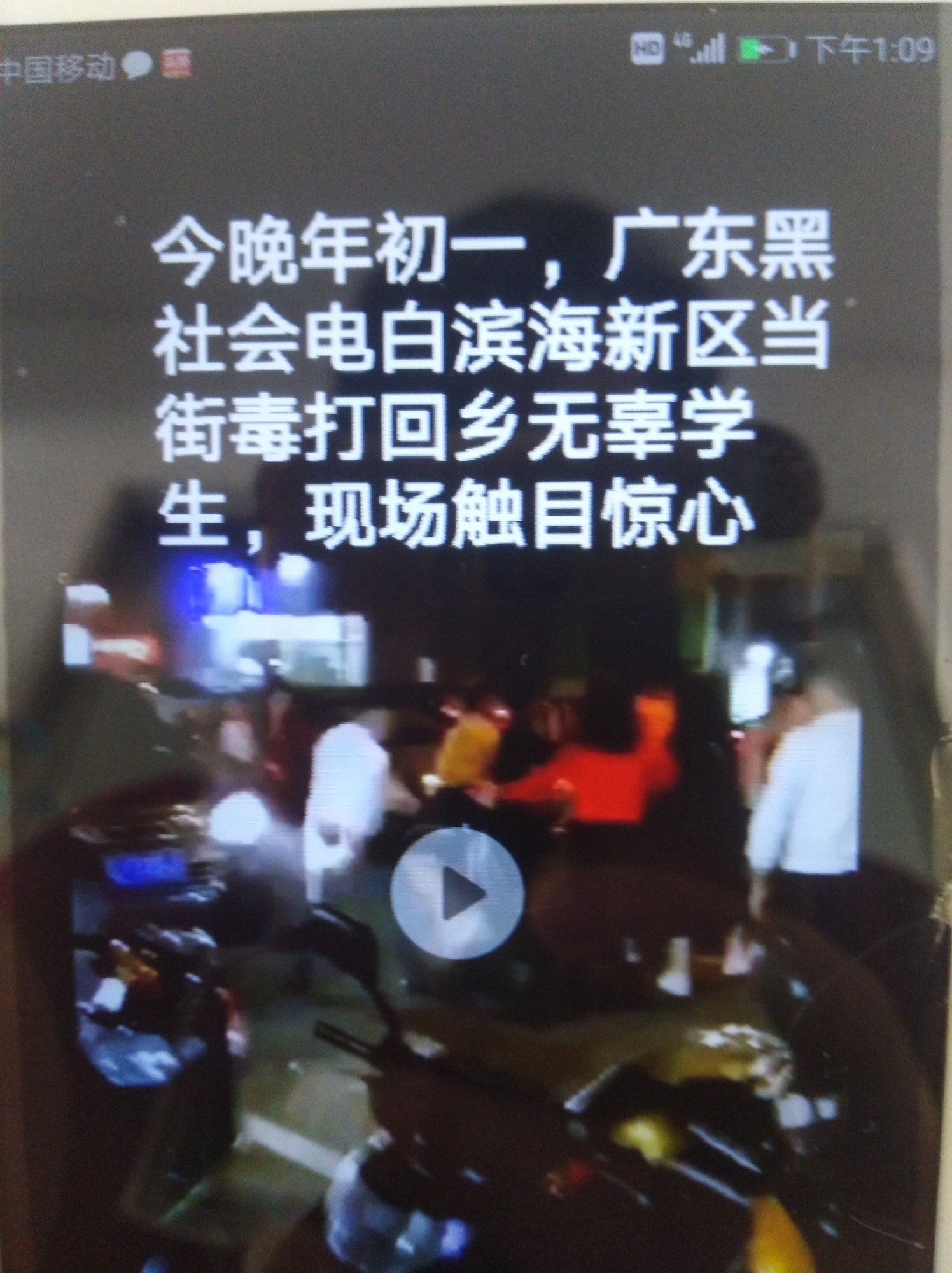 年初一,本是各乡亲各学生回家过年相聚的节日,却不曾想因出街游玩,因车辆刮碰,对方却纠集黑社会殴打无辜人员,现如今社会,车辆刮碰己是平常交通事故,一切可报交警保险即可,对方却因是仗着自己有关系,几分钟纠集几十人不问青红皂白,来到不问原由就打,警察来到后居然还进行围攻,抓获一人,电城派出所在不足八小时,人员未验伤未举证,擅自将参与打斗人员放走,视频无法上传,只有截图 1549517324993.jpg 1549517367416.jpg 1549517427655.jpg 1549517513525.jpg 1549517513525.jpg 1549517579919.jpg 1549516358206.jpg