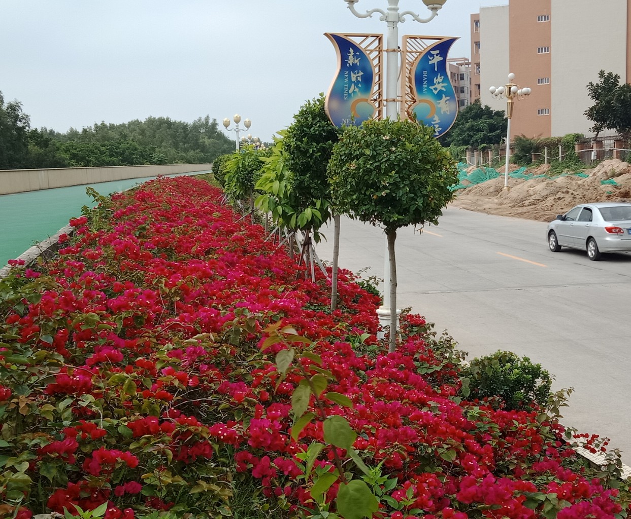 瓦为何会发这呢,当时途经时在碧道上,见有一男真的用单车搭着个女的向海滨大桥那边踏去(诂是在附近工地干活的?),当时驾摩在下面,看着花开与上面骑单车两人,心就想拍下了,可惜放好摩托,并想及时拿出手机拍下,可惜他她们已骑着单车走到那边尽头了~