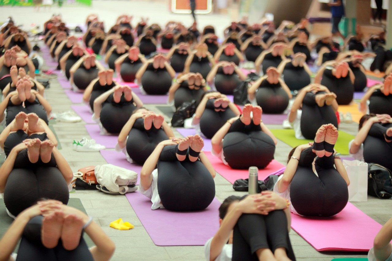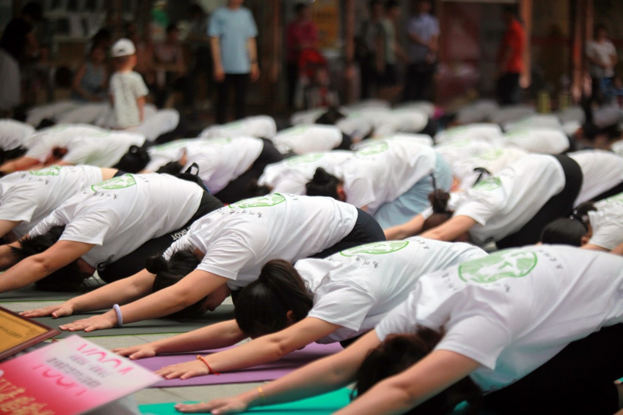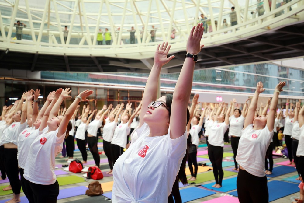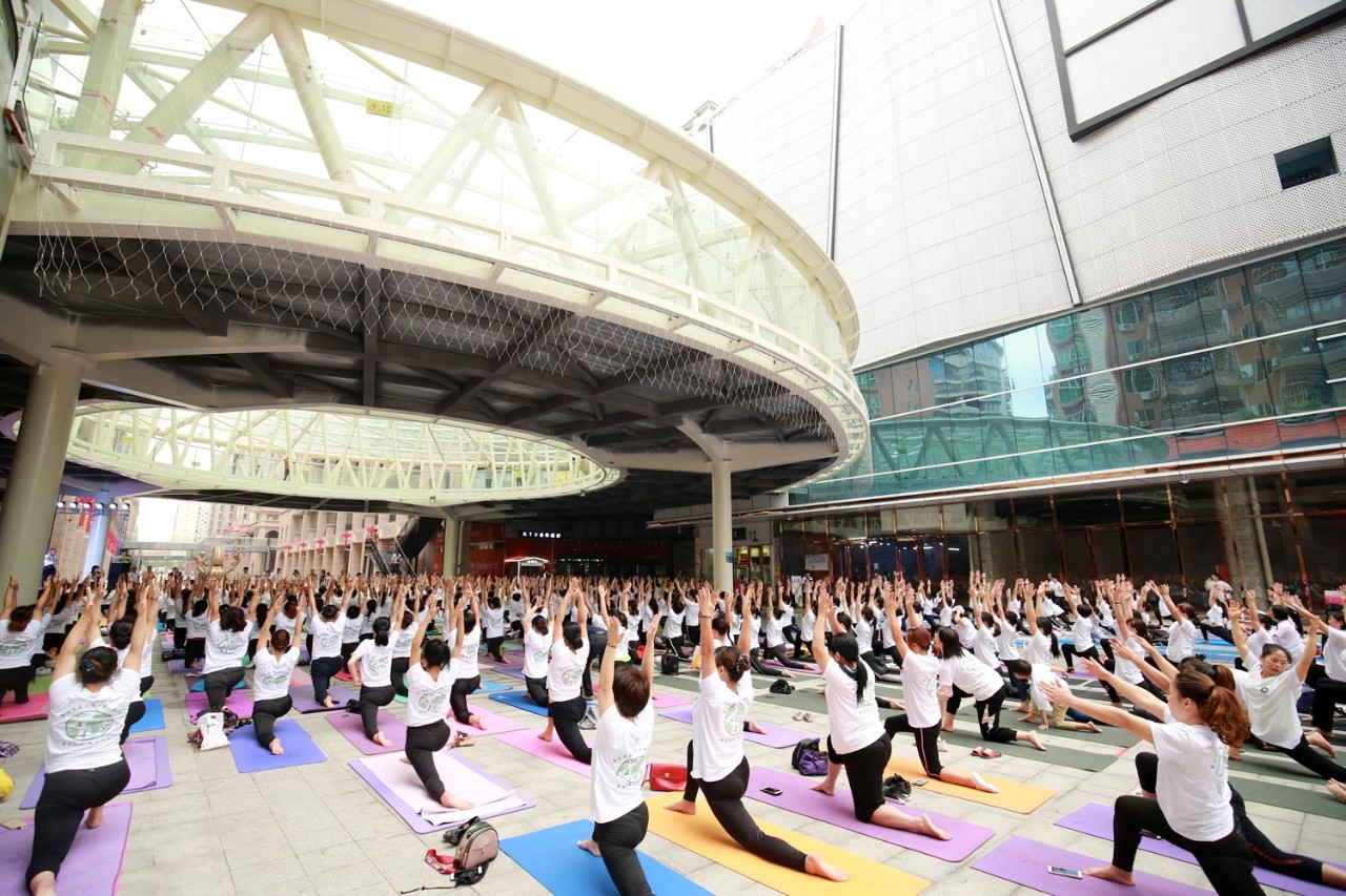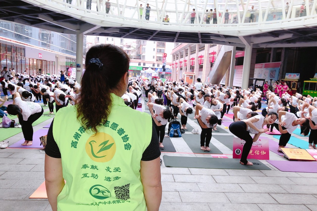 ▲统一T恤的大型户外公益瑜伽盛会,享受震撼的视觉盛宴