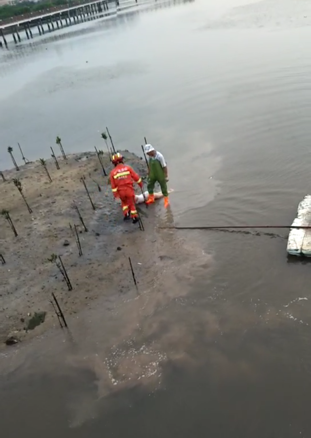 情感问题,被渔夫发现救起到红树林沙洲,派出所和消防帮忙转移到岸上