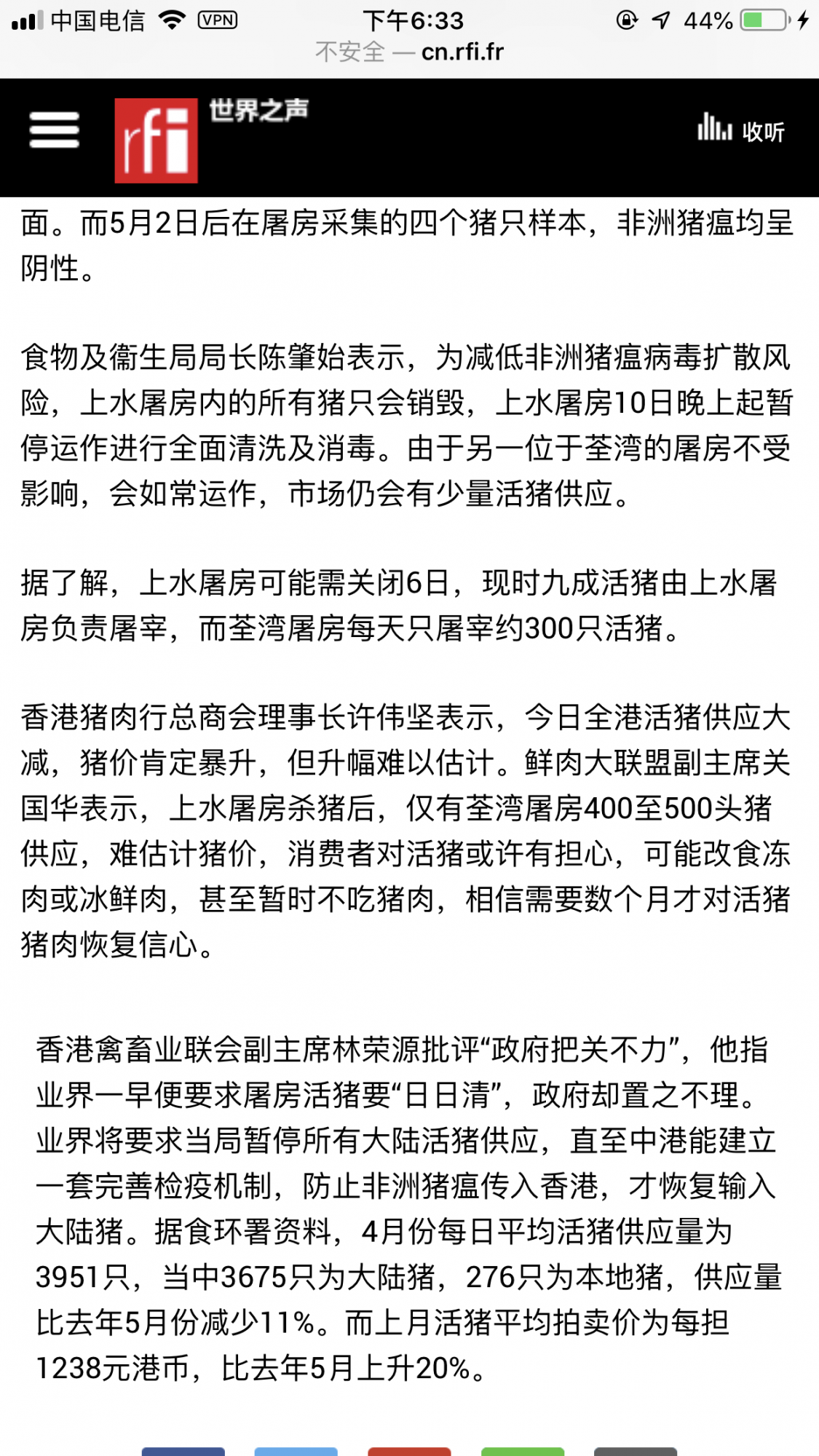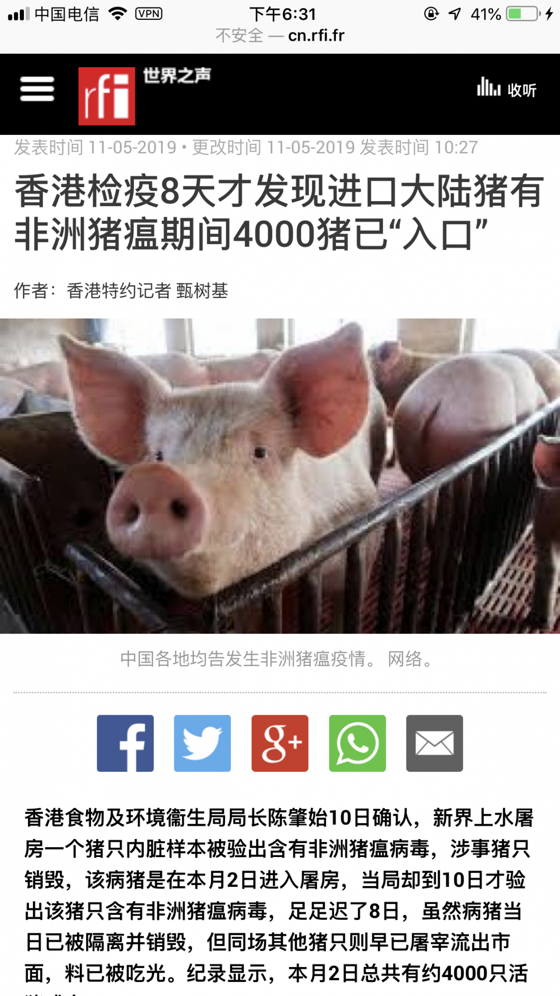 来自湛江的猪在香港检出非洲猪瘟!!!!!