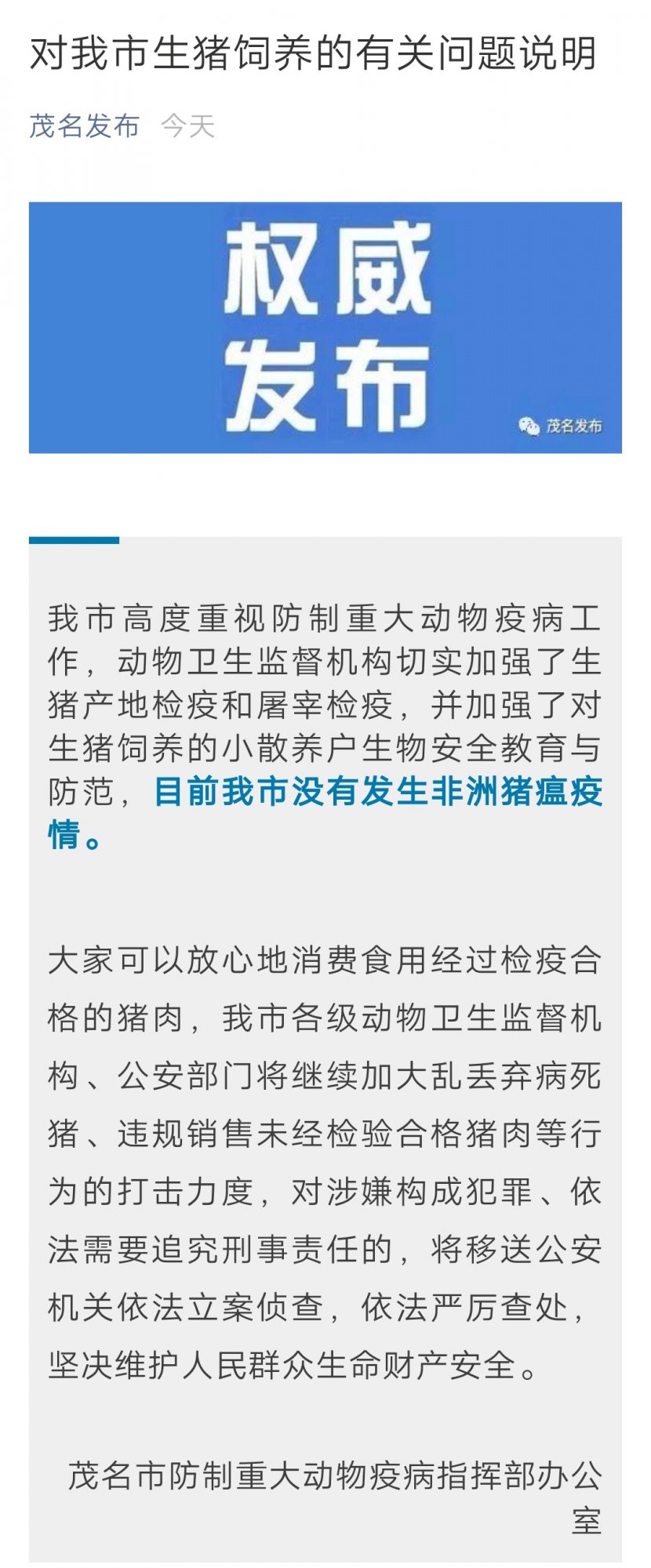 4月19日,农业农村部新闻办公室发布,海南省万宁市和儋州市发生非洲猪瘟疫情