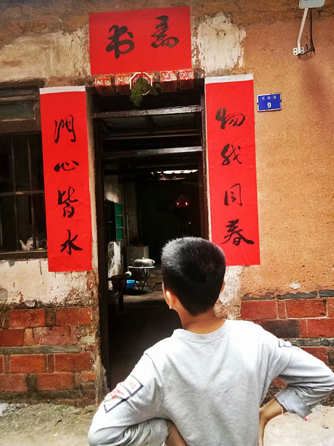 这个男童是电白二小四年级学生,有人请他读这副对联,能全部读对字音,可以领取小红包一个……