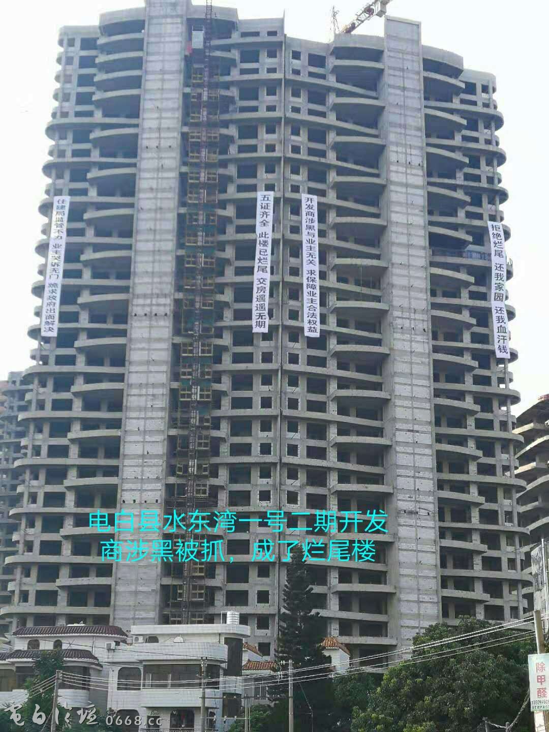 广东茂名电白水东镇水东湾一号楼盘烂尾一年多了,竟然没有任何消息,无期限的等待啊,和等死其实是差不多。