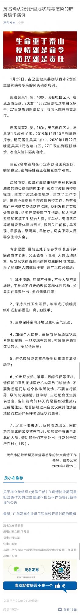 新闻 〈不信谣不传谣·持续更新〉茂名新型冠状病毒感染的肺炎确诊病例 (3人在浏览)
